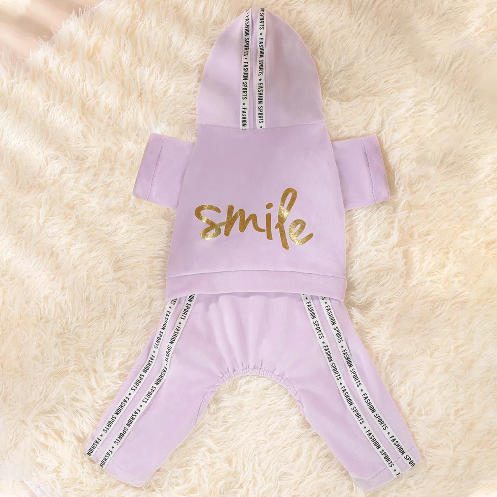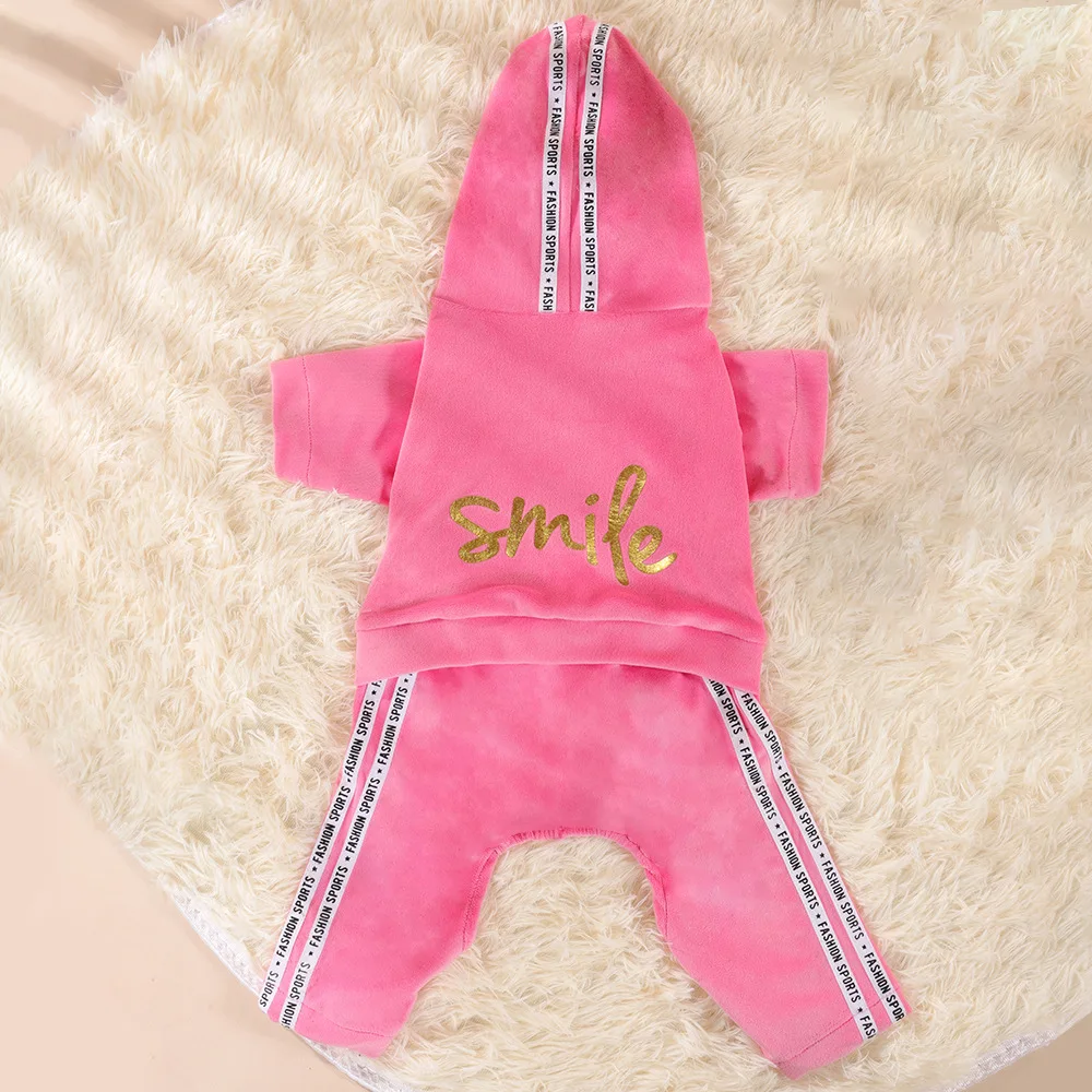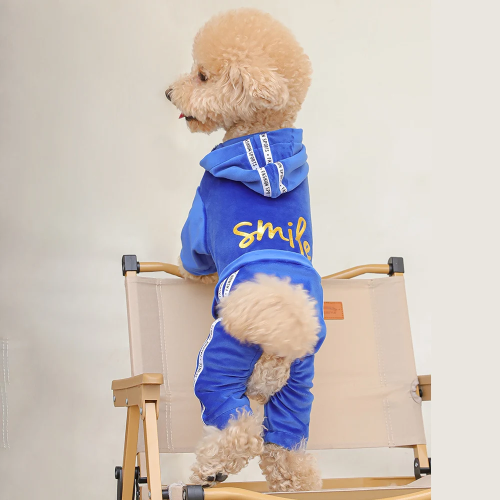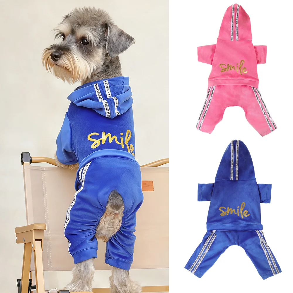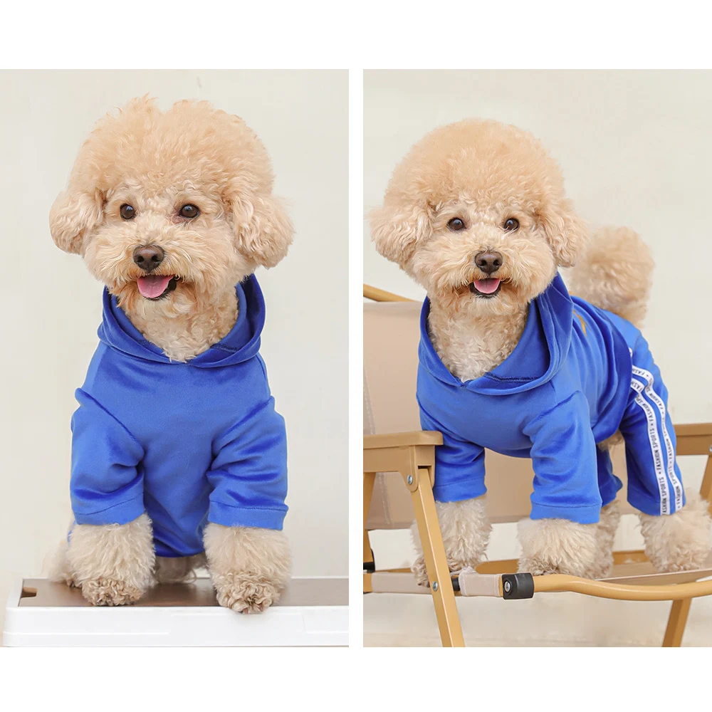 Sudadera con capucha estampada para perros con rayas de retales, ropa para mascotas con forro polar para perros pequeños y medianos, jersey de felpa suave, mono