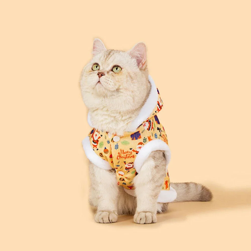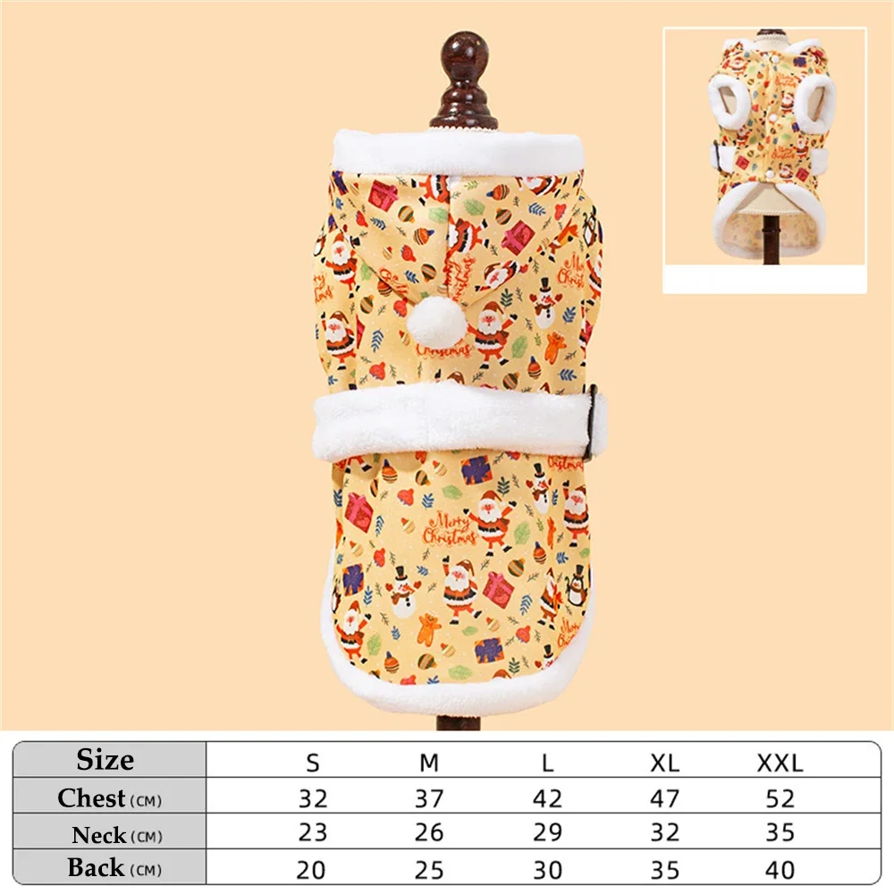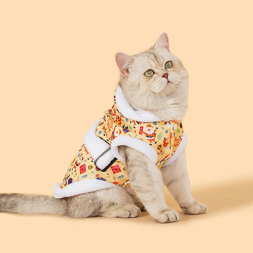 Sudadera con capucha con estampado navideño para mascotas, abrigo acolchado de algodón para gatos y perros, ropa cálida de invierno Bichon de peluche