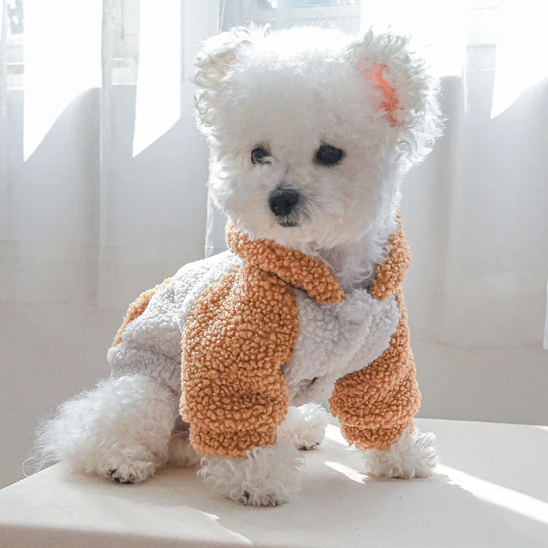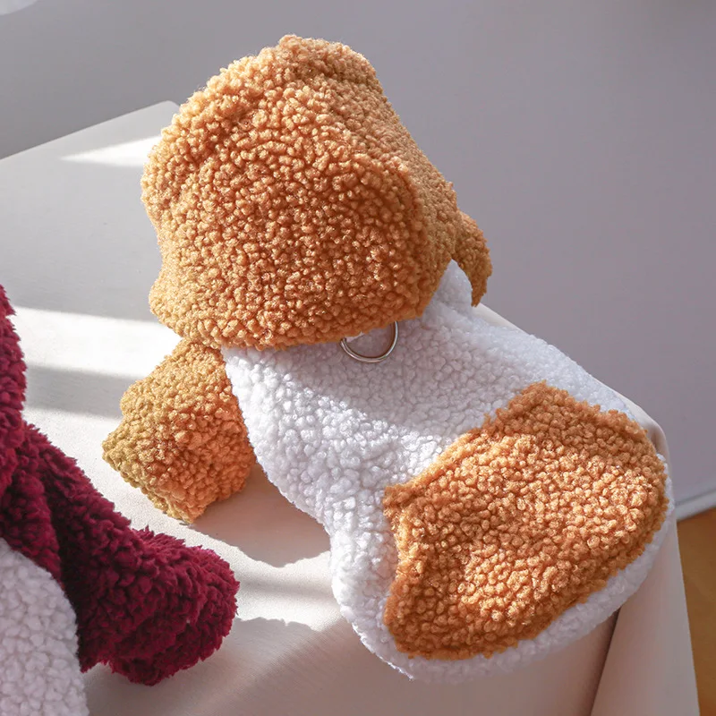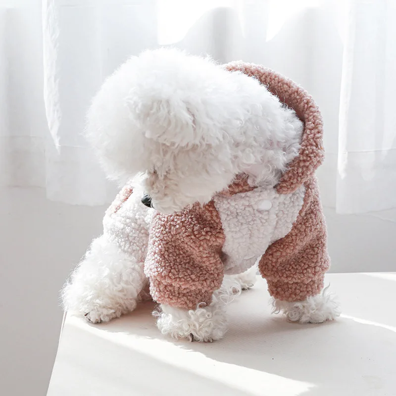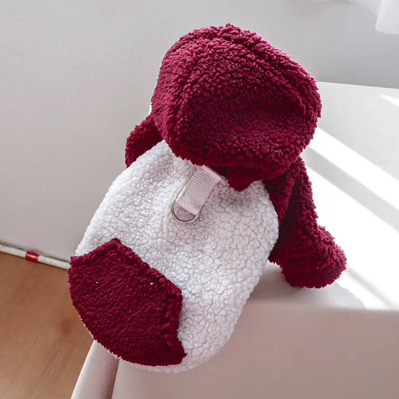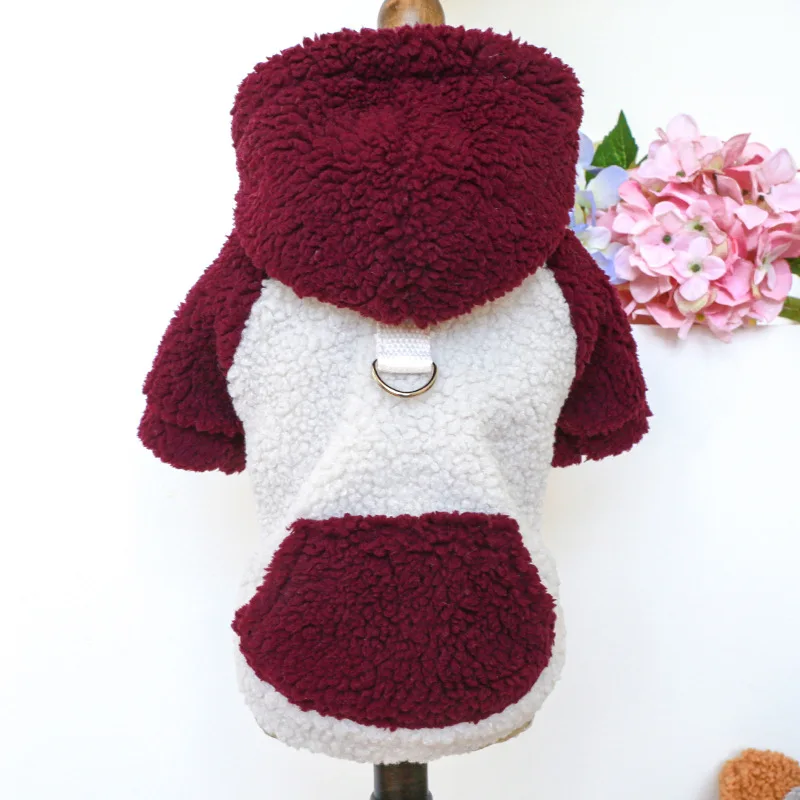 Sudadera con capucha de felpa cálida para mascotas, ropa de otoño e invierno, Color cálido para mantener el calor y resistente al frío, Sudadera con capucha de tracción de felpa de cordero