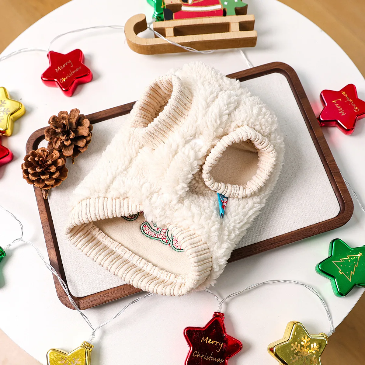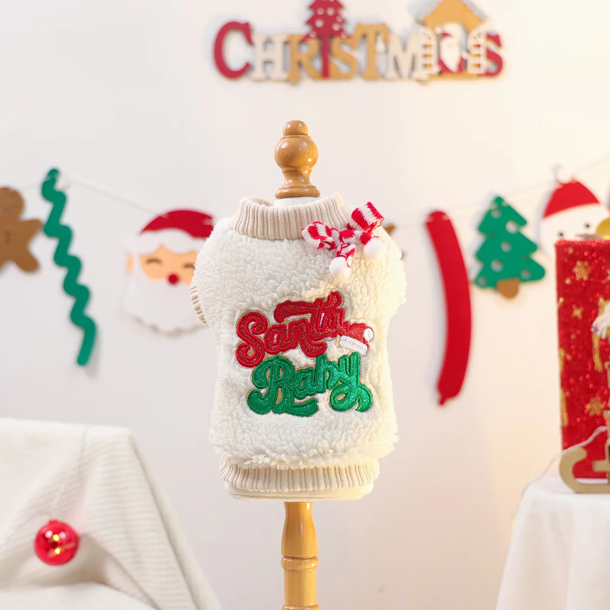 Sudadera con capucha de felpa para Festival de otoño/invierno para mascotas, abrigo informal de cuello alto con bonito gatito, ropa navideña de terciopelo para perros pequeños