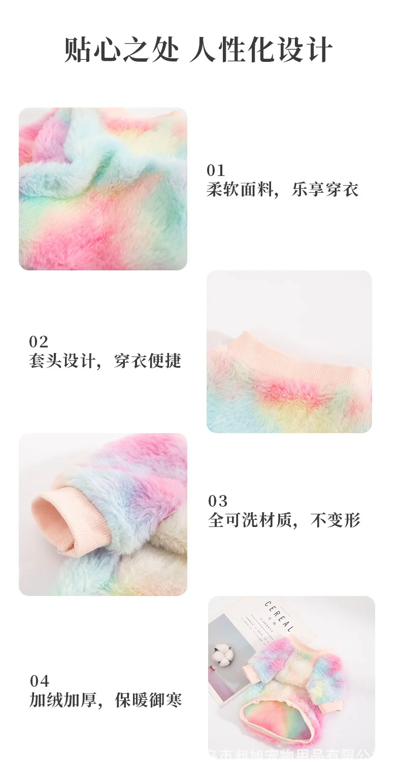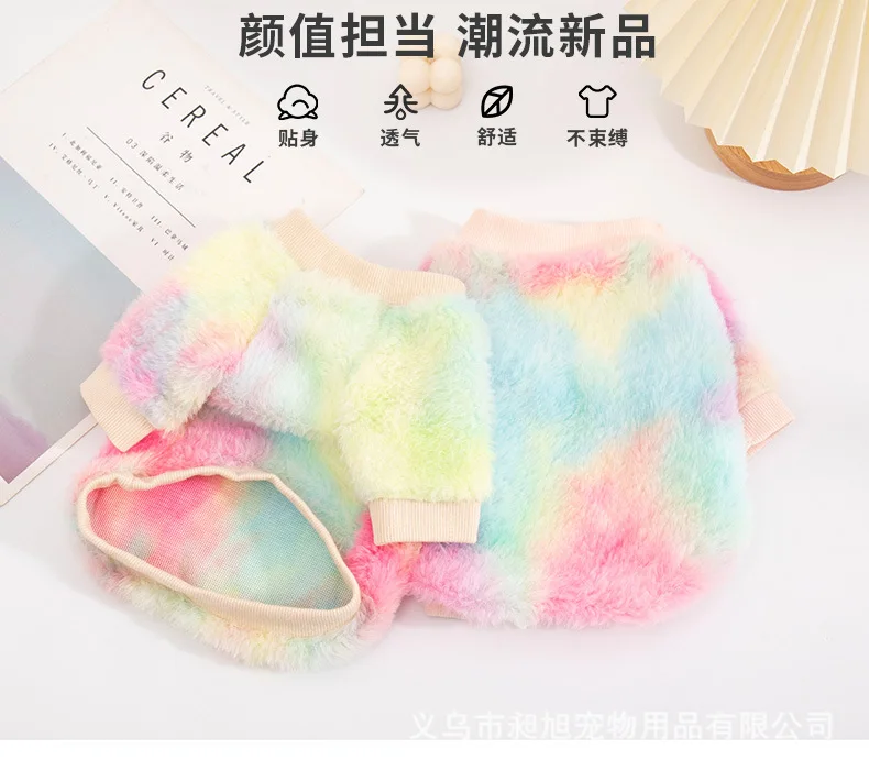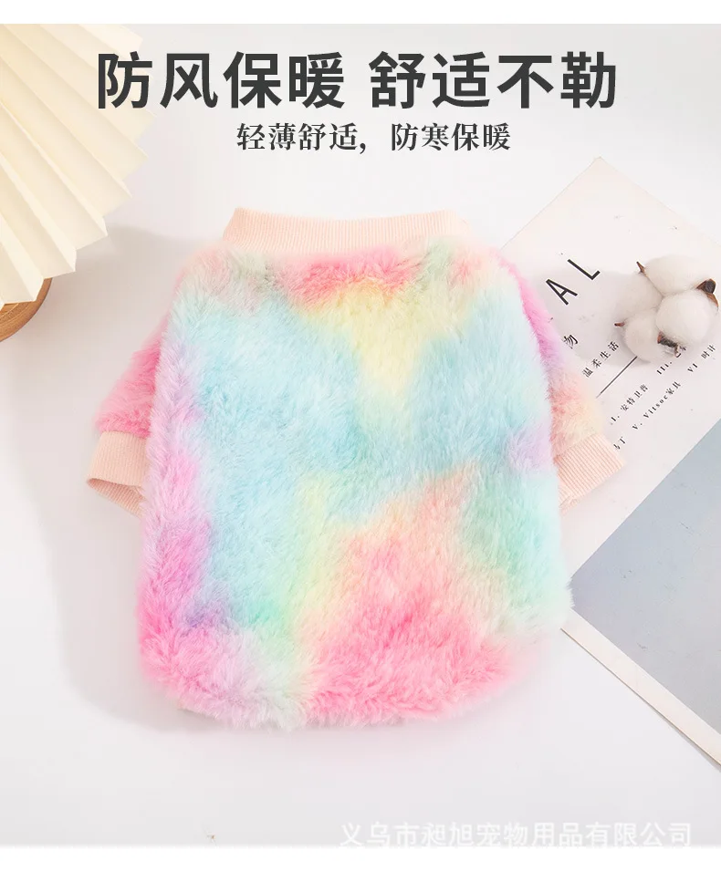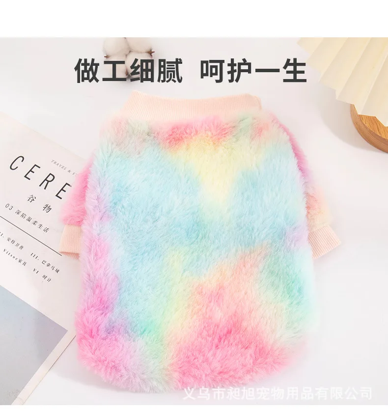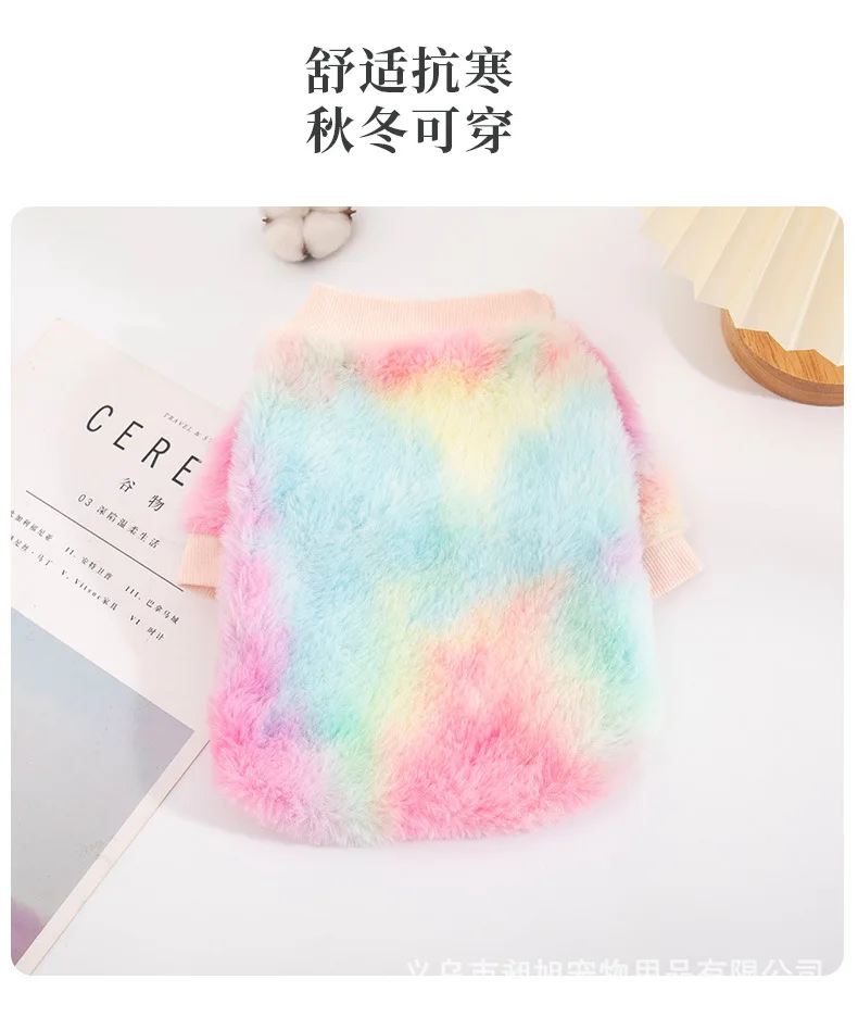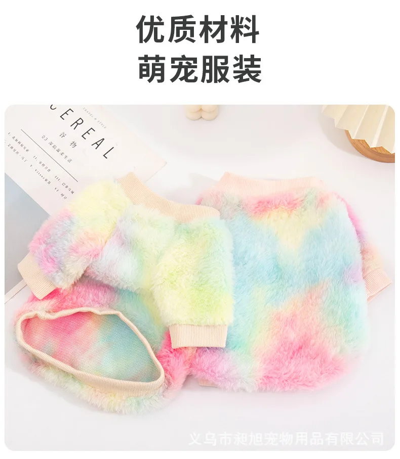 Sudadera con capucha de felpa con gradiente de Color caramelo para mascotas, traje cálido de dos patas para otoño e invierno, jersey bonito para mascotas, abrigo para gato y cachorro