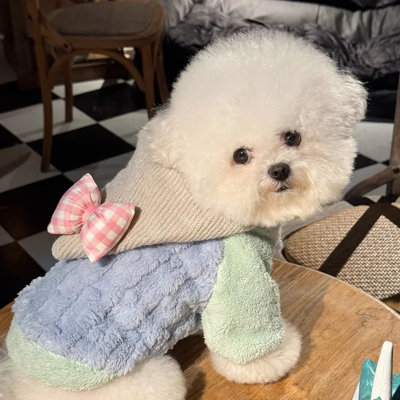 Sudadera con capucha de felpa para mascotas, Sudadera con capucha con lazo a cuadros, abrigo Schnauzer para perros pequeños y gatos, ropa para cachorros, ropa para perros pequeños