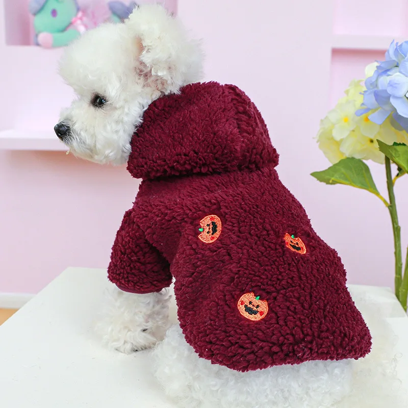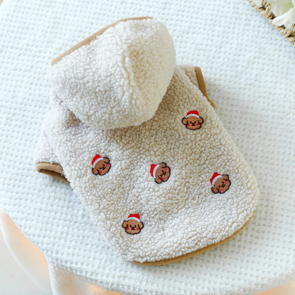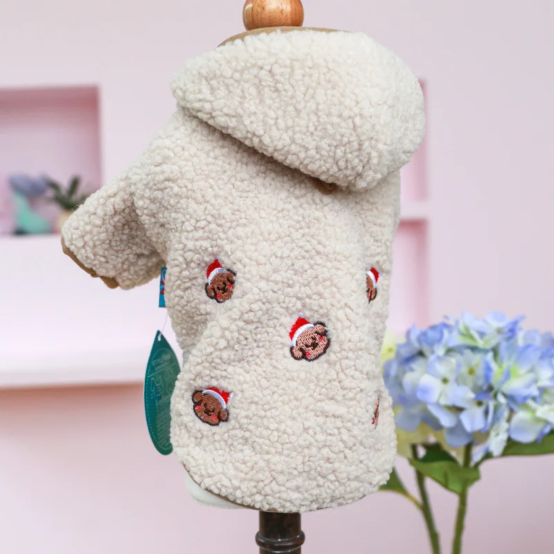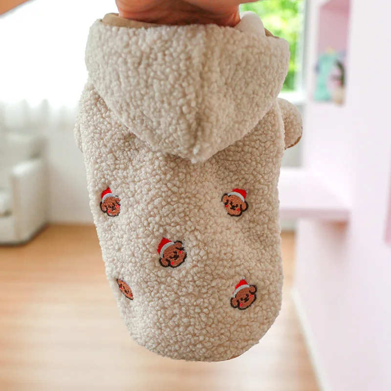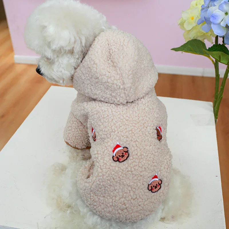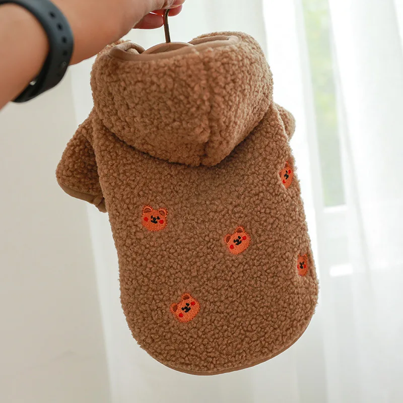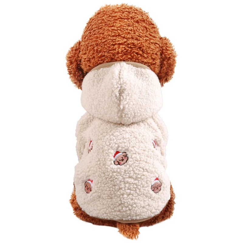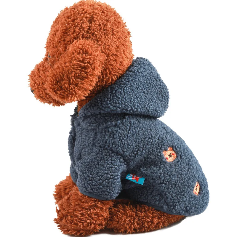 Sudadera con capucha de lana de cordero para mascotas Otoño Invierno calidez Sudadera con capucha de dos patas bordado oso de peluche chaqueta con capucha de lana de cordero