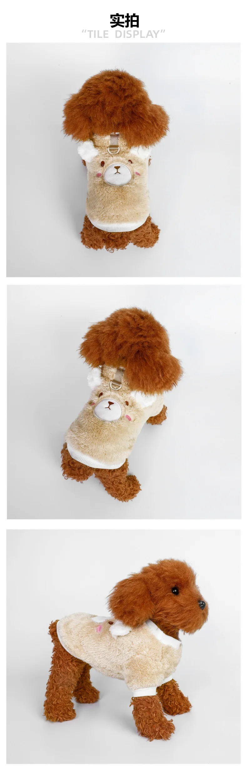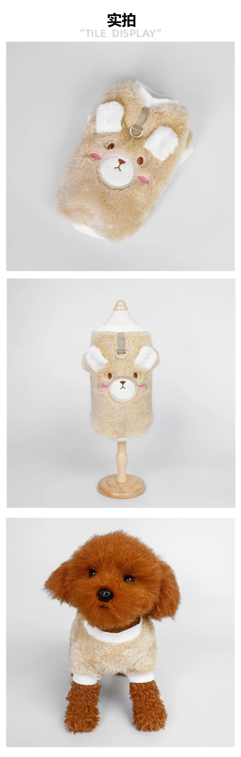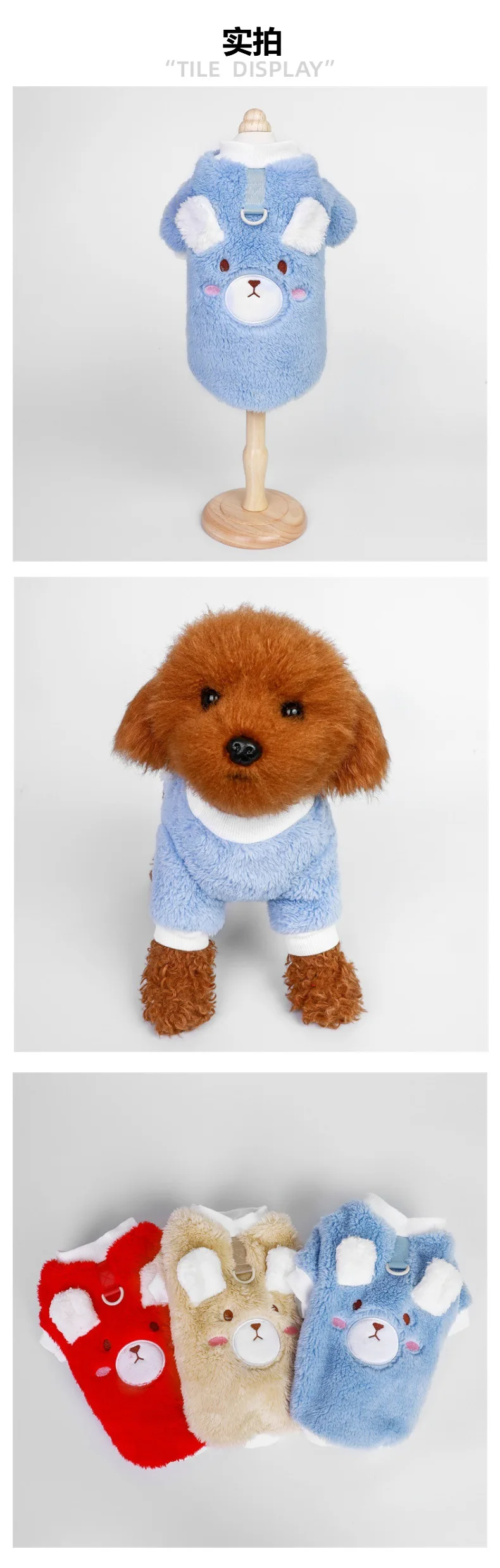 Sudadera con capucha de oso para mascotas, ropa para perros de dos piernas de terciopelo, abrigo de otoño/invierno, ropa para perros pequeños, ropa para cachorros