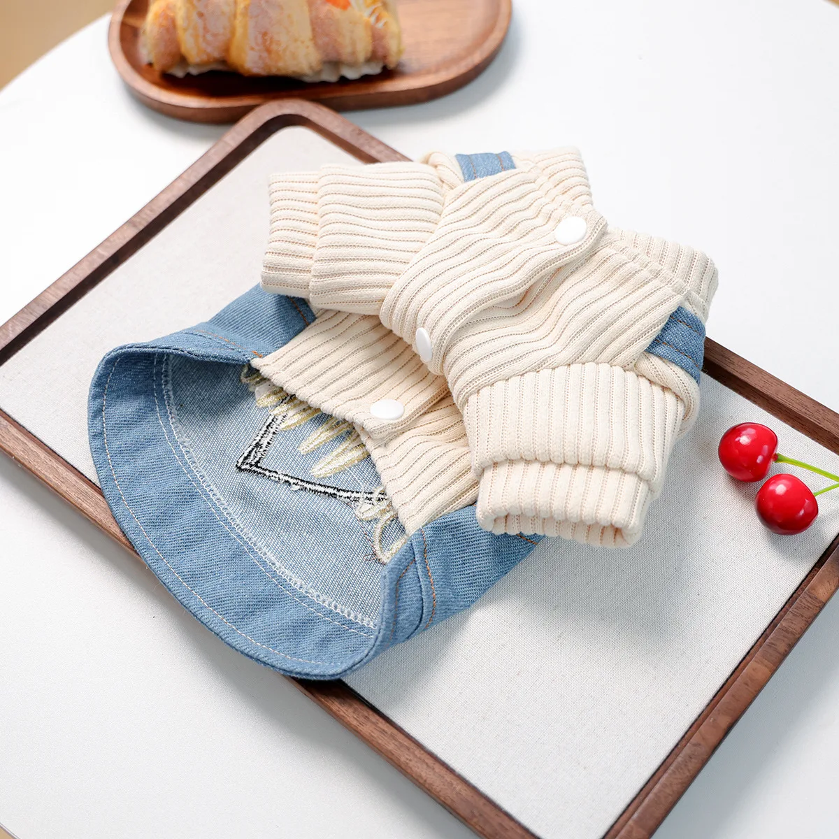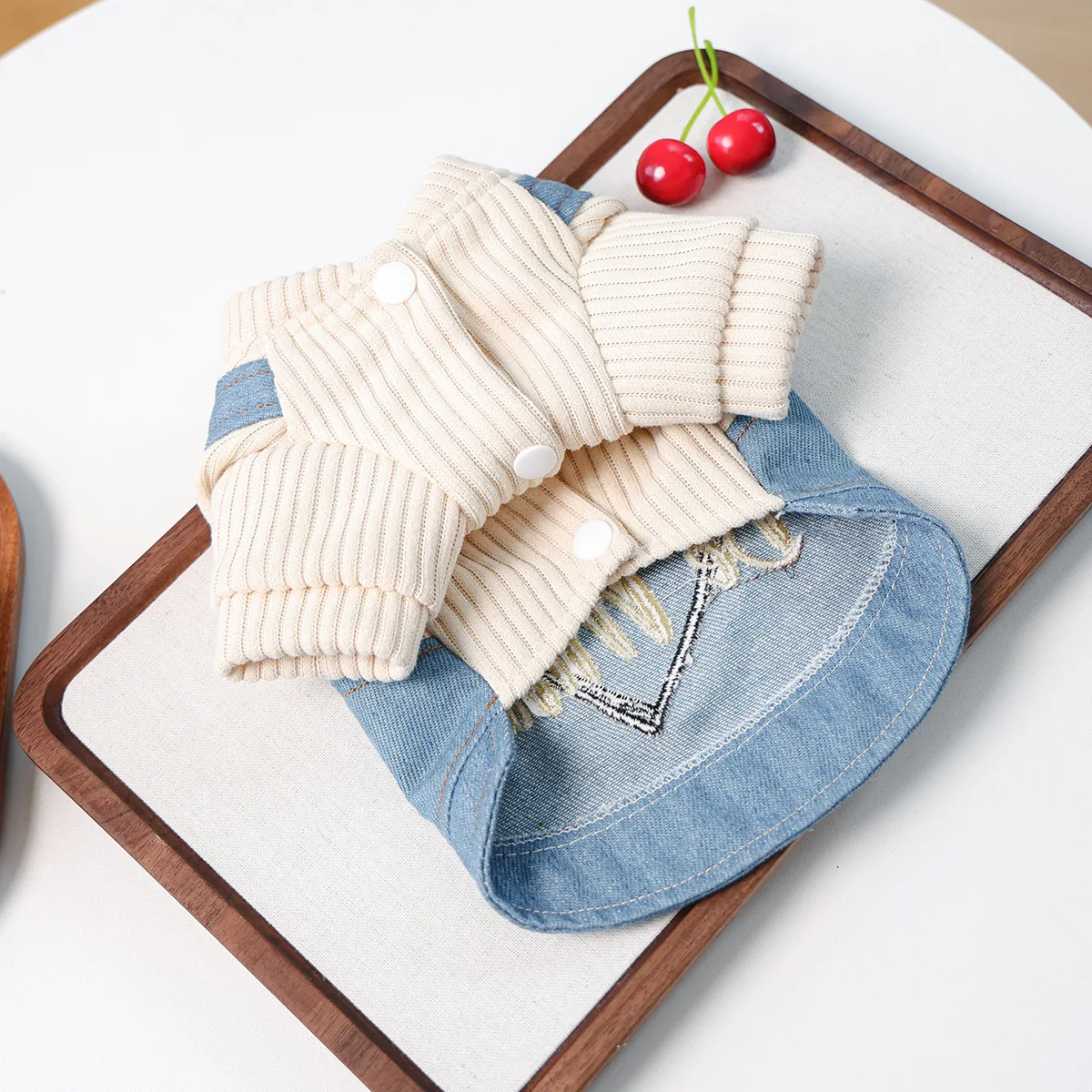Sudadera con capucha de otoño e invierno para mascotas, chaleco vaquero de retales, falda con correa para el hombro bordada con corazón para perros pequeños y gatos, ropa para cachorros