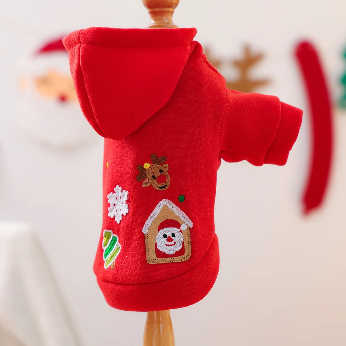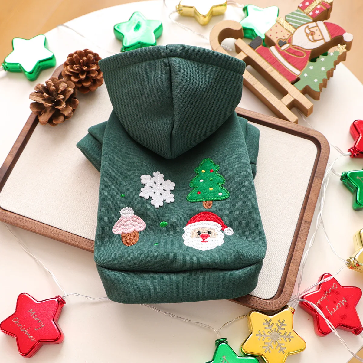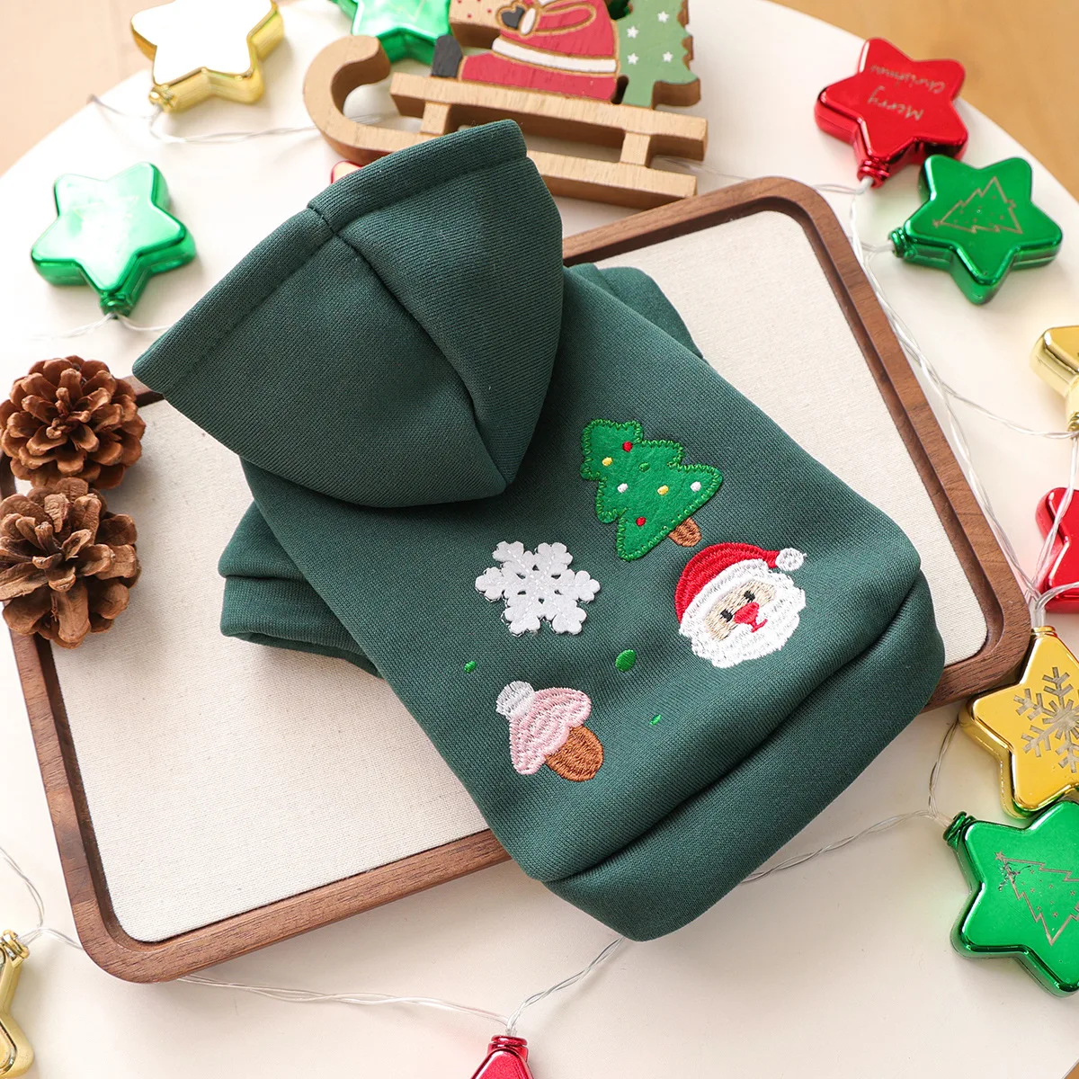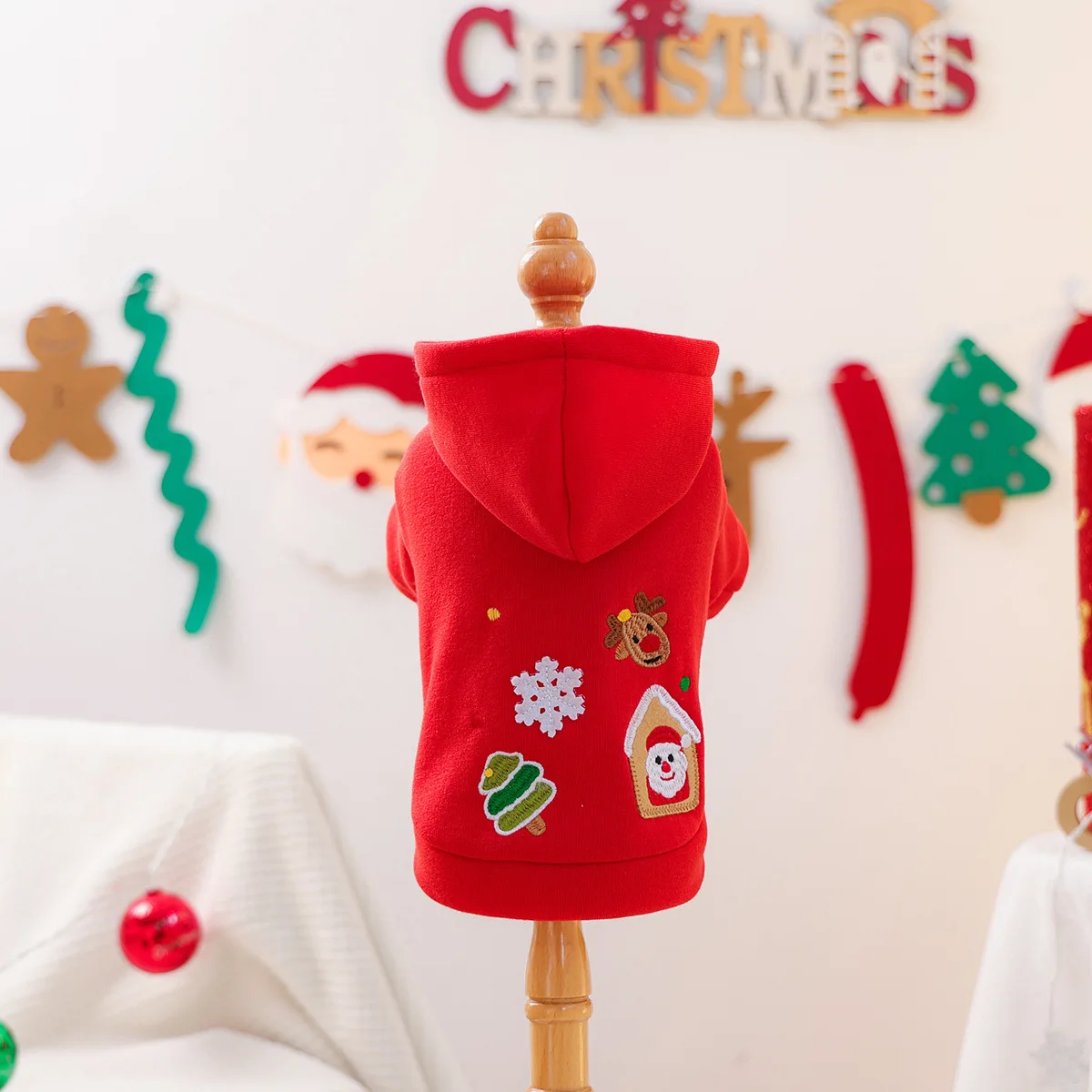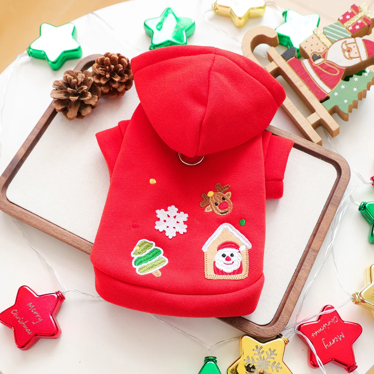 Sudadera con capucha de otoño e invierno para mascotas, chaqueta informal con capucha de Navidad con bordado de Navidad para mascotas, ropa para cachorros