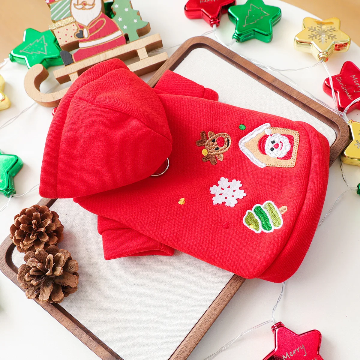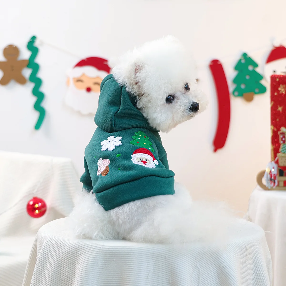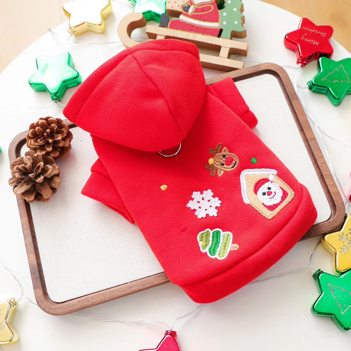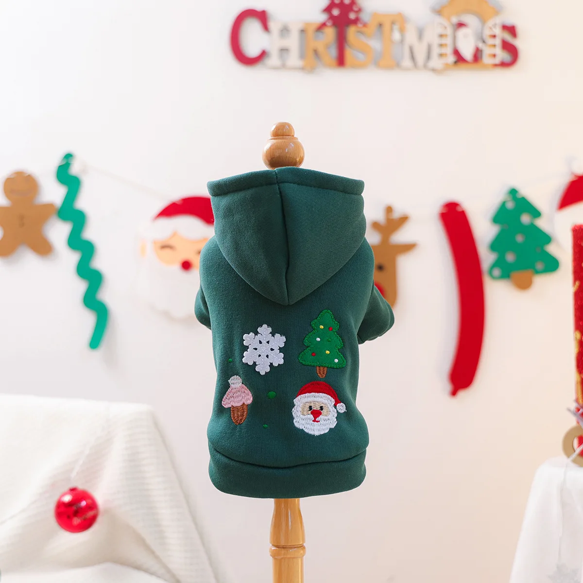 Sudadera con capucha de otoño e invierno para mascotas, chaqueta informal con capucha de Navidad con bordado de Navidad para mascotas, ropa para cachorros