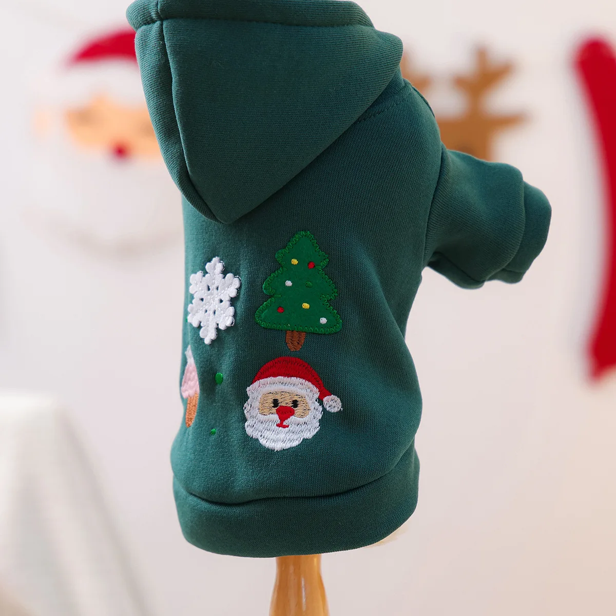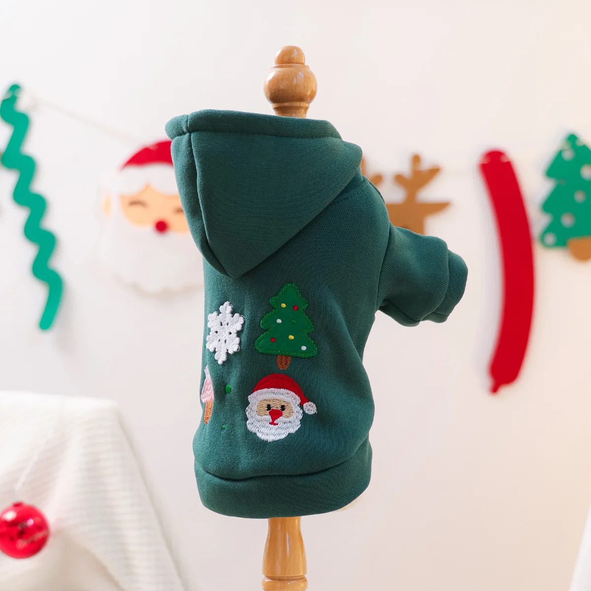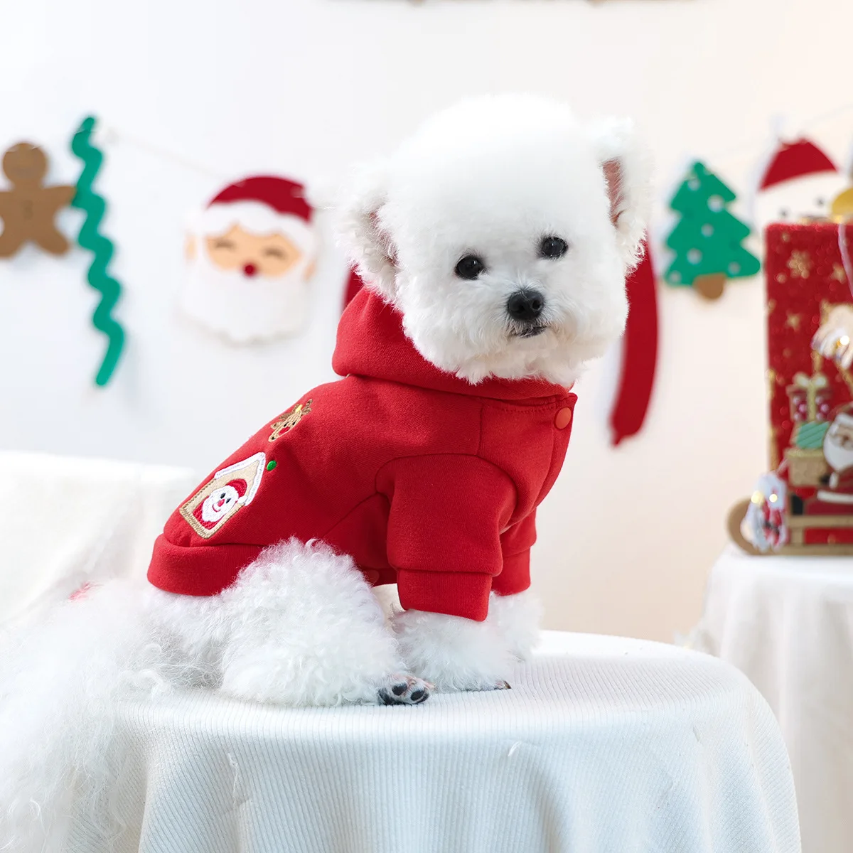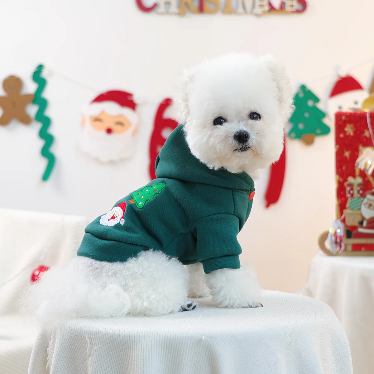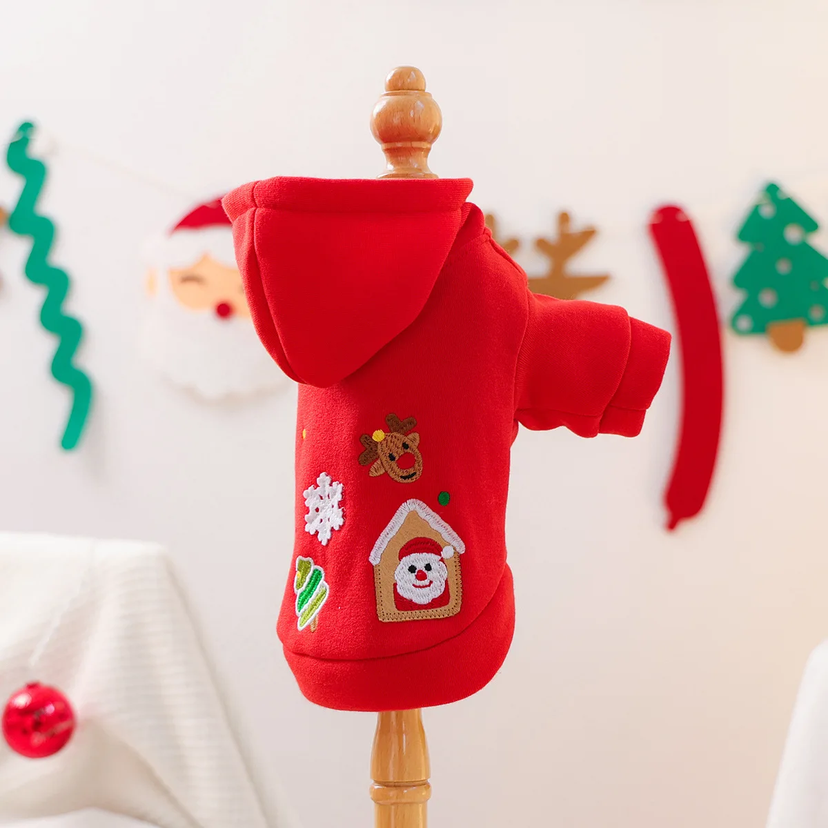 Sudadera con capucha de otoño e invierno para mascotas, chaqueta informal con capucha de Navidad con bordado de Navidad para mascotas, ropa para cachorros