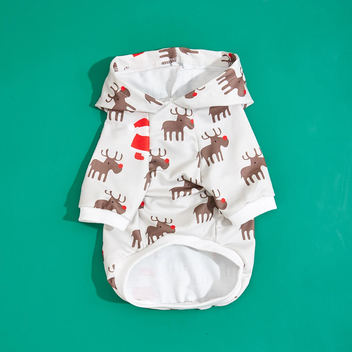 Sudadera con capucha para perro, camisas navideñas, ropa para perro, campana pequeña, alce, ropa estampada para perro, sudaderas para perro, ropa de Navidad con cuello alto para mascota Pu