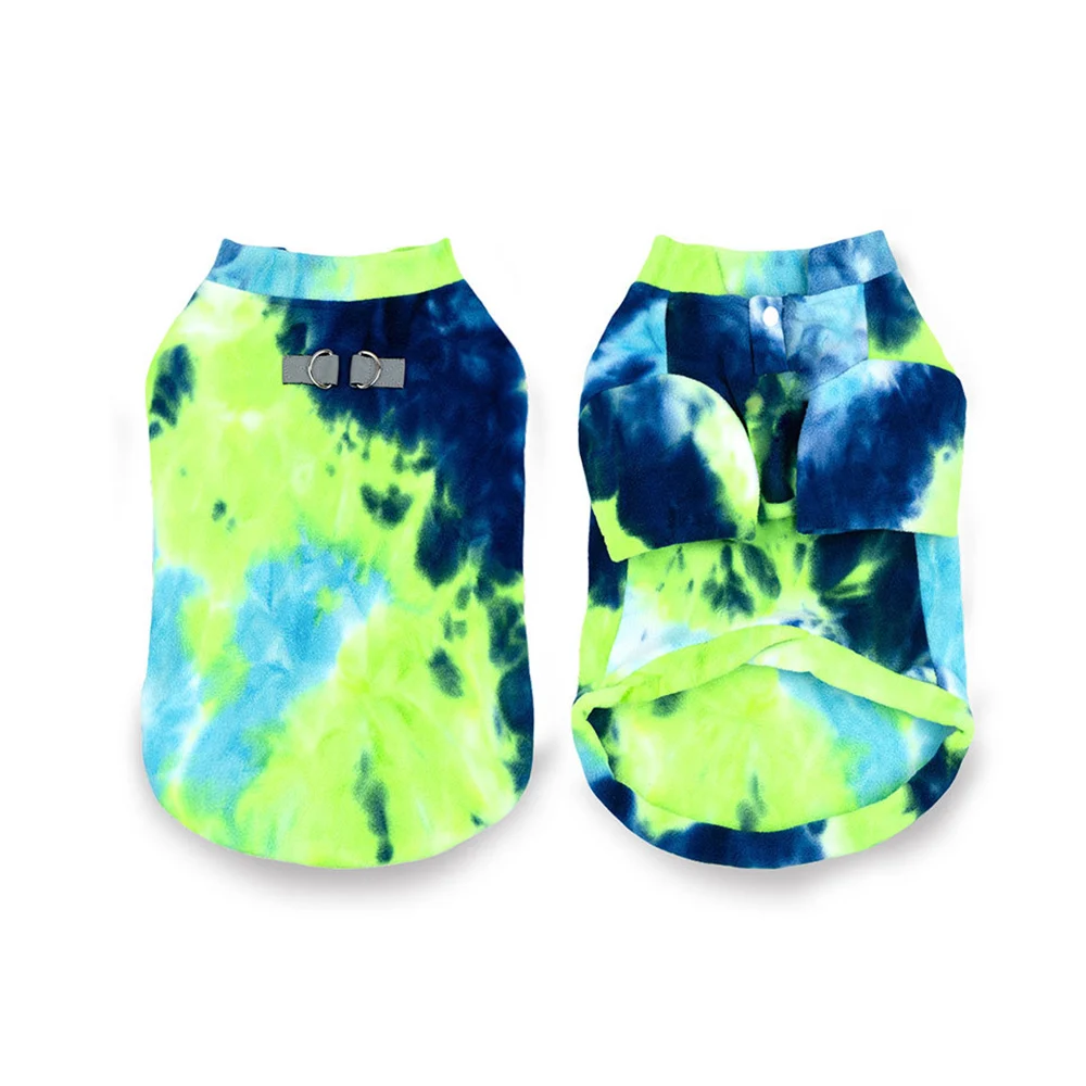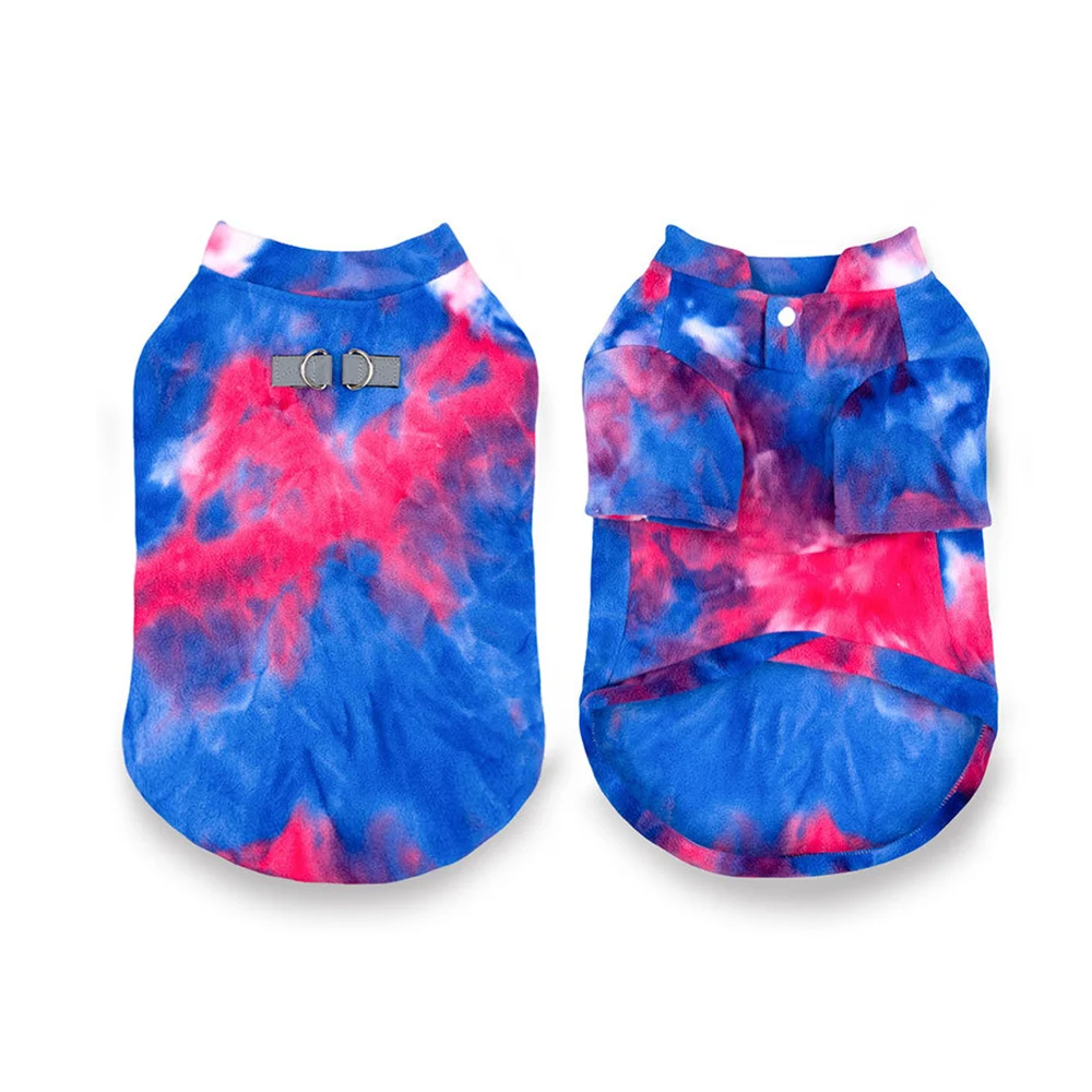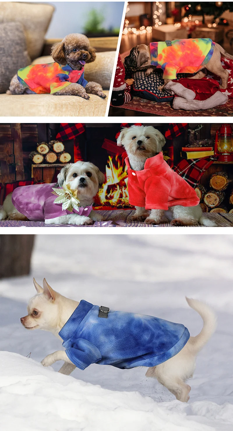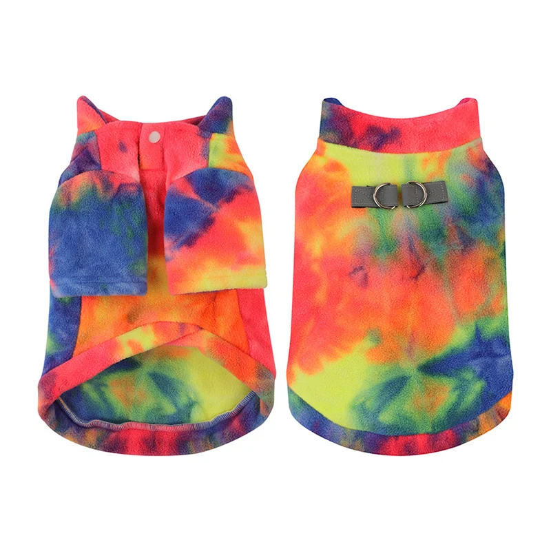 Sudadera con capucha para perro Tie Dye, abrigo polar cálido de invierno con agujero para correa de bolsillo para perros pequeños y medianos, suéter para cachorros en clima frío