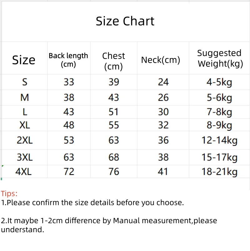 Tamaño: S a 4XL (4 kg a 25 kg)