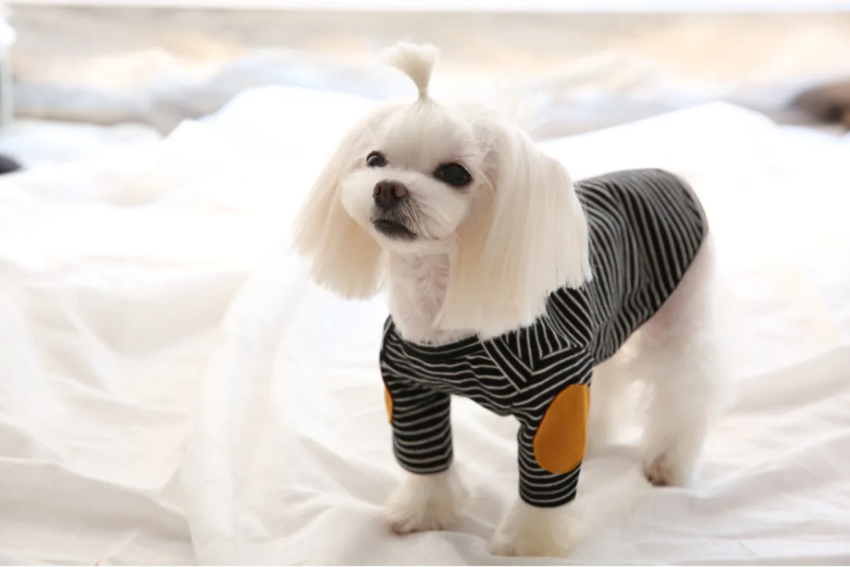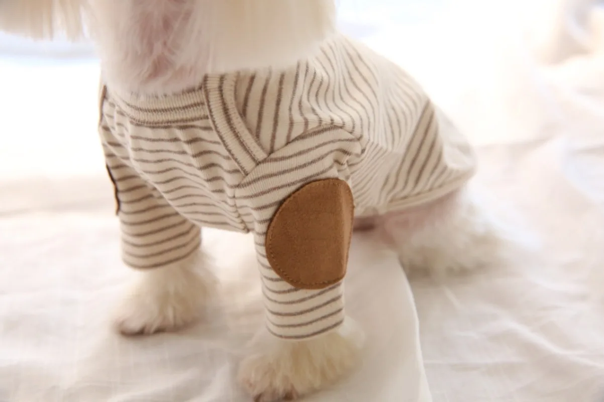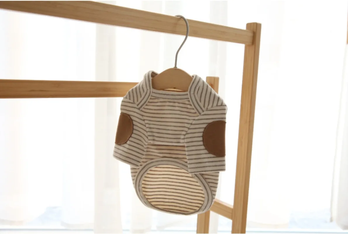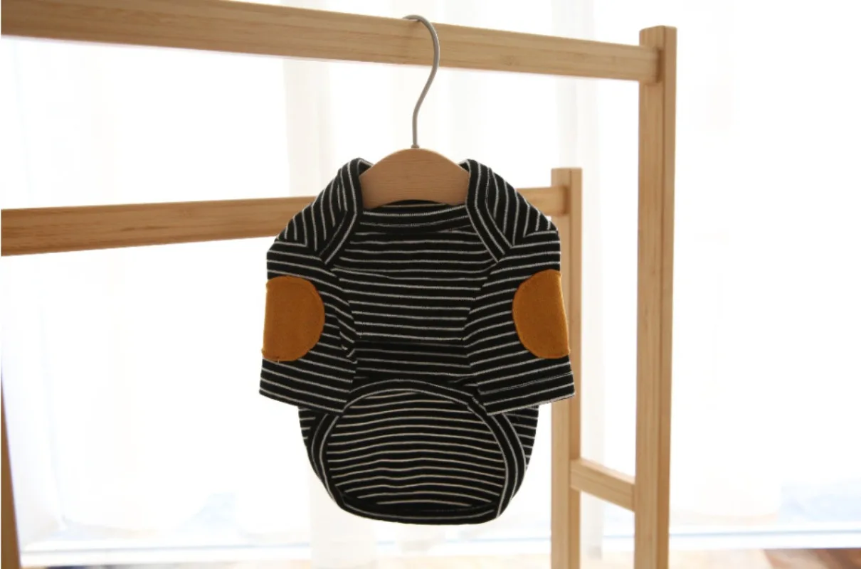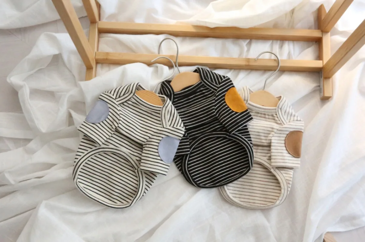 Sudadera con capucha a rayas para cachorros de invierno, sudadera bordada para perros, ropa cálida para mascotas, camisa inferior de Color sólido, jersey suave, ropa para perros