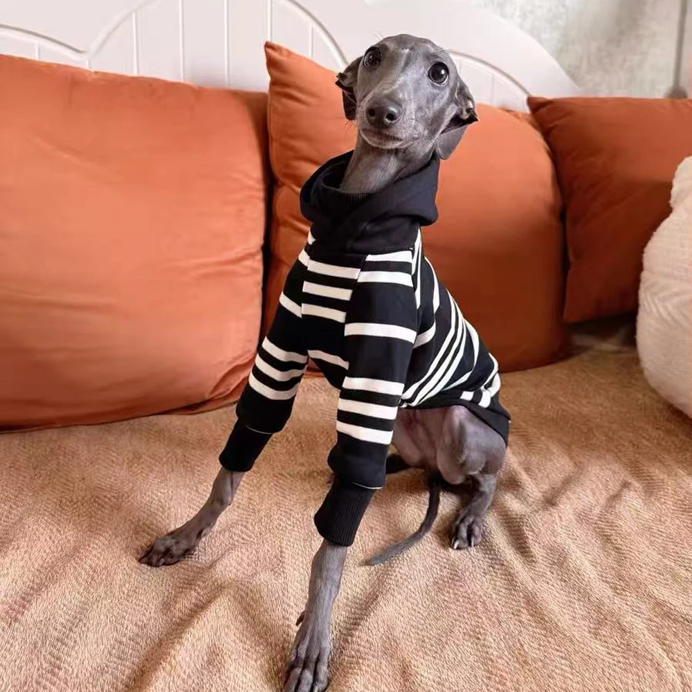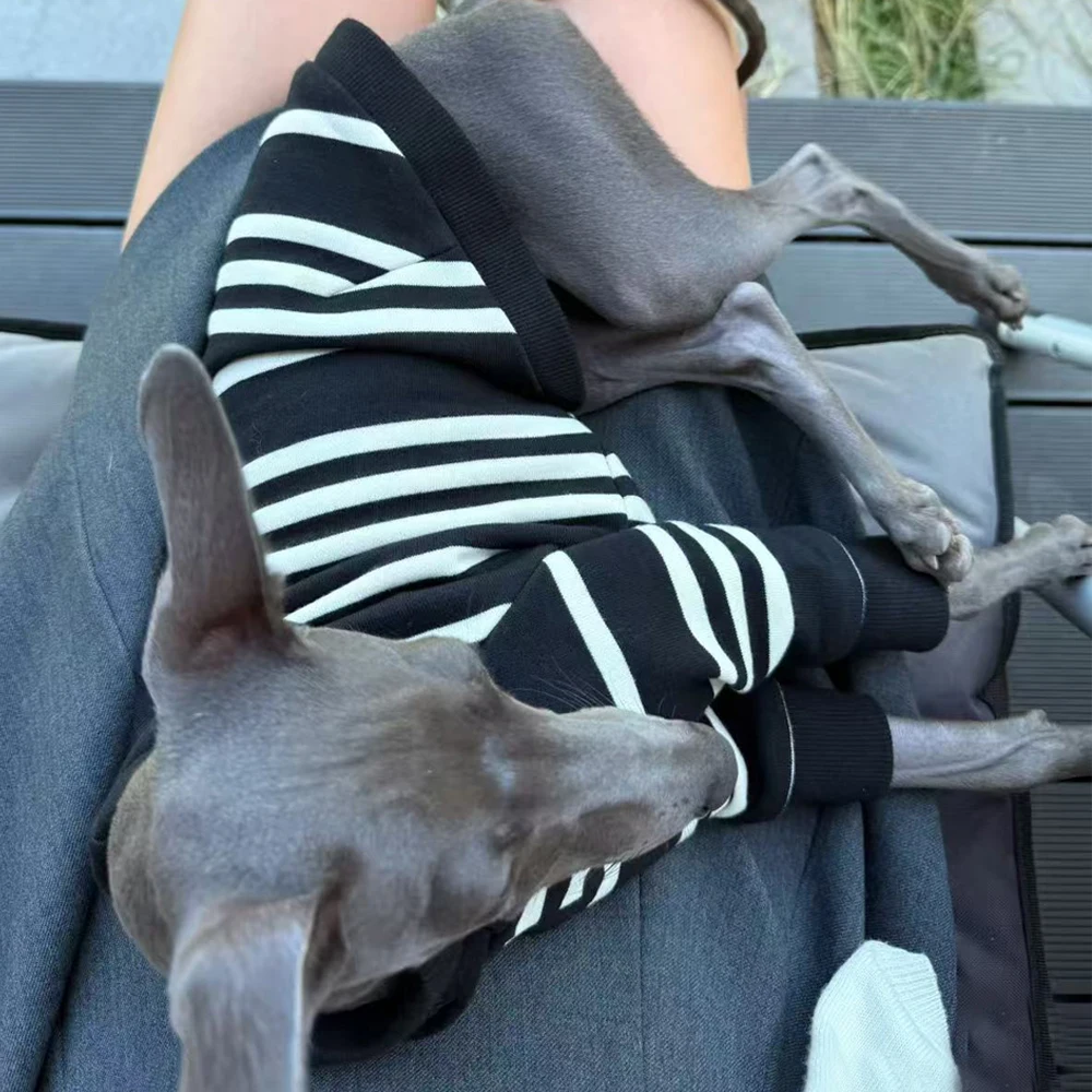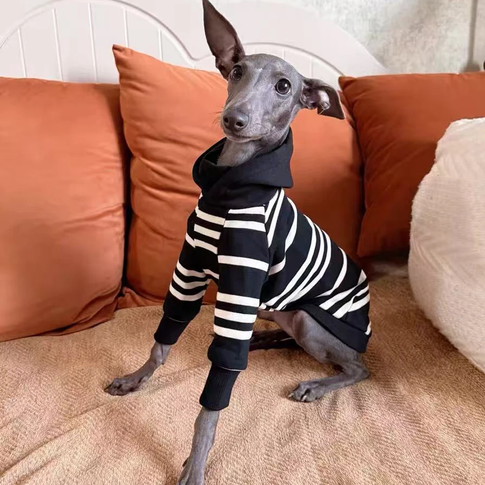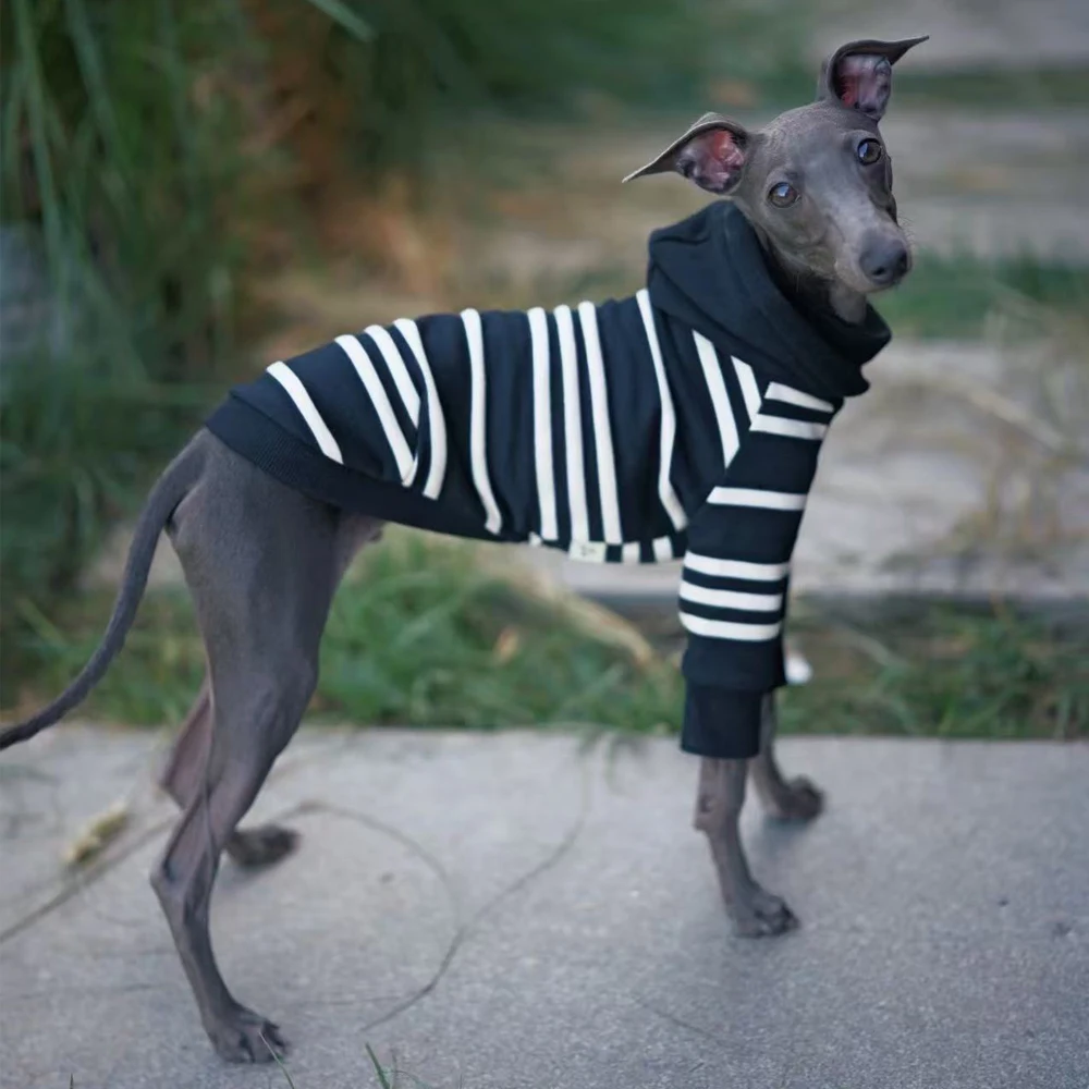 Sudadera con capucha a rayas a la moda para perros Whippet, abrigo de algodón de otoño para medios pequeños, pijamas cálidos de invierno de color gris italiano grande