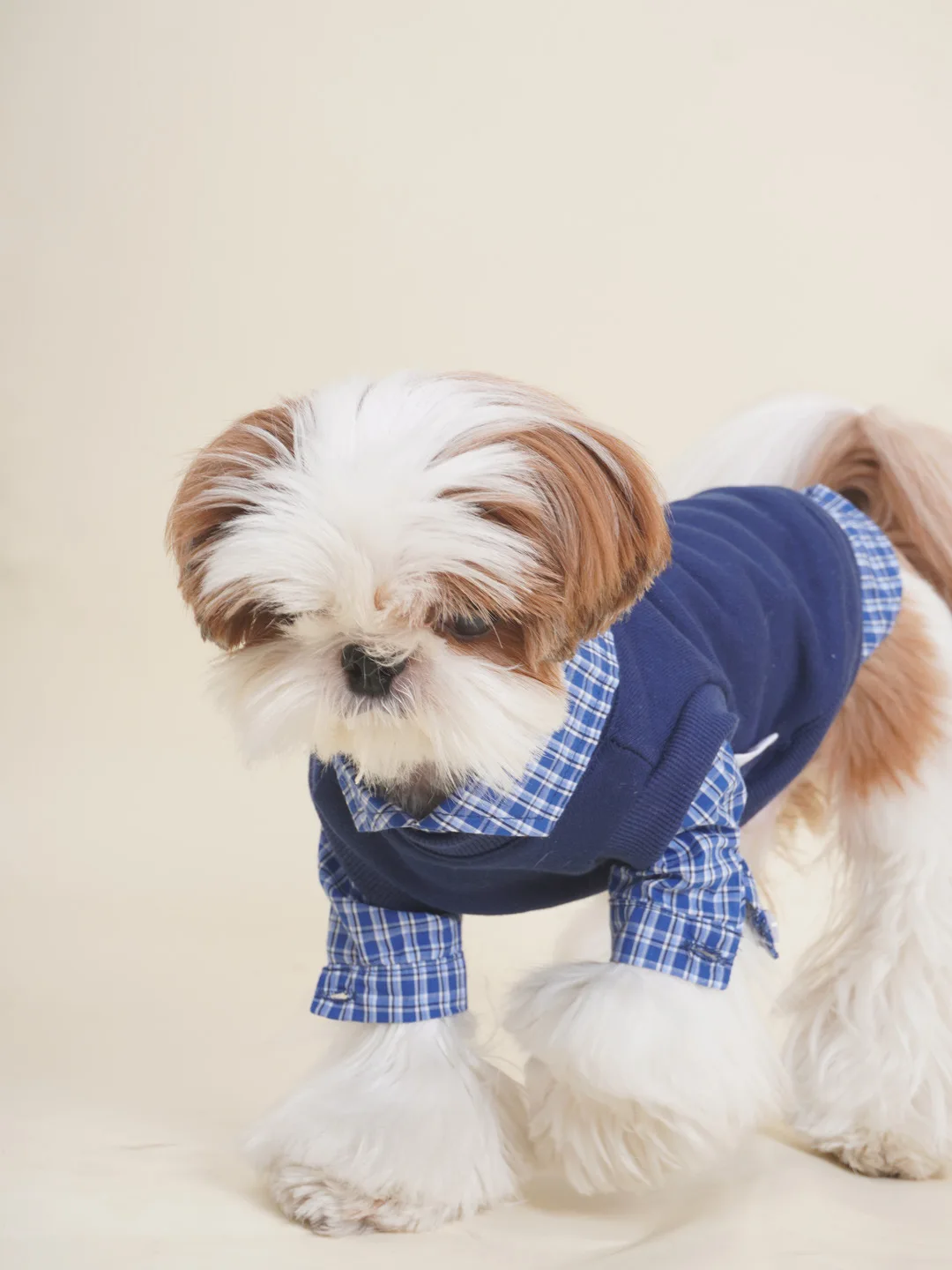 Sudadera con capucha de retazos a cuadros para mascotas, camisa de otoño e invierno, oso Schnauzer Bibi, perro pequeño, Gato falso, ropa para cachorros, 2 piezas