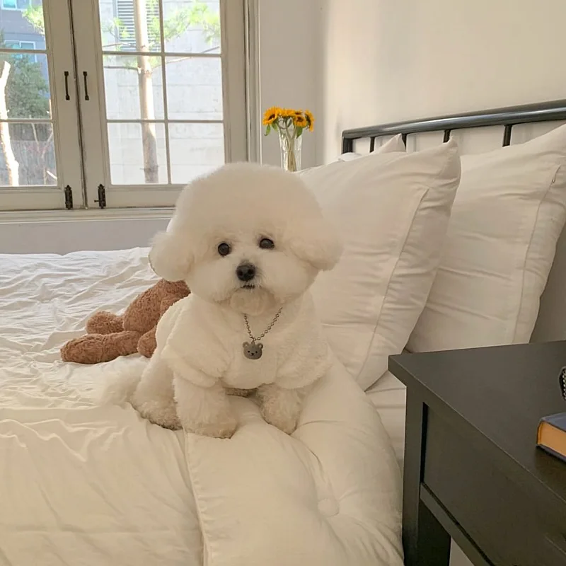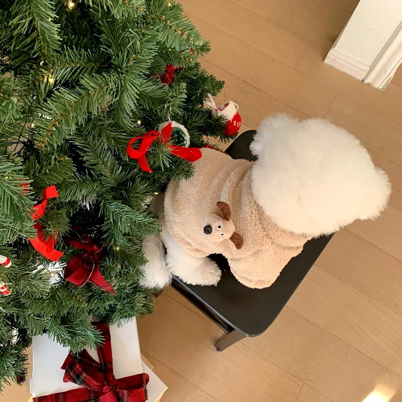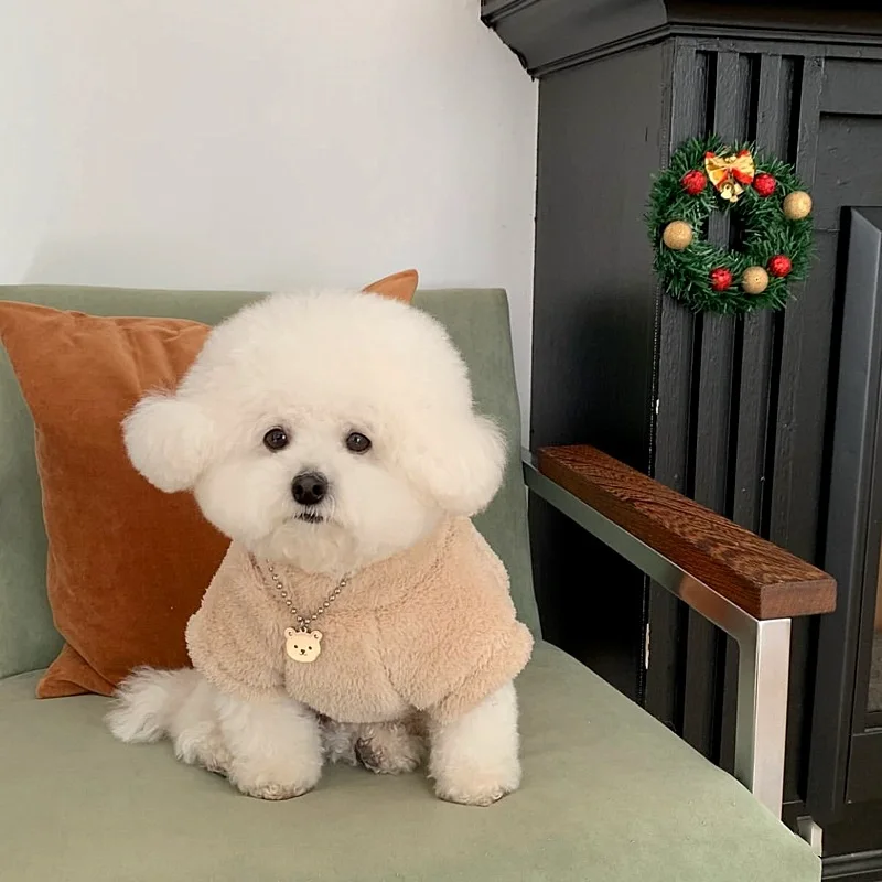 Sudadera con capucha de terciopelo de cordero para otoño/invierno, Teddy Yorkshire, ropa de terciopelo para perros pequeños, chaqueta de cuello alto, ropa para cachorros