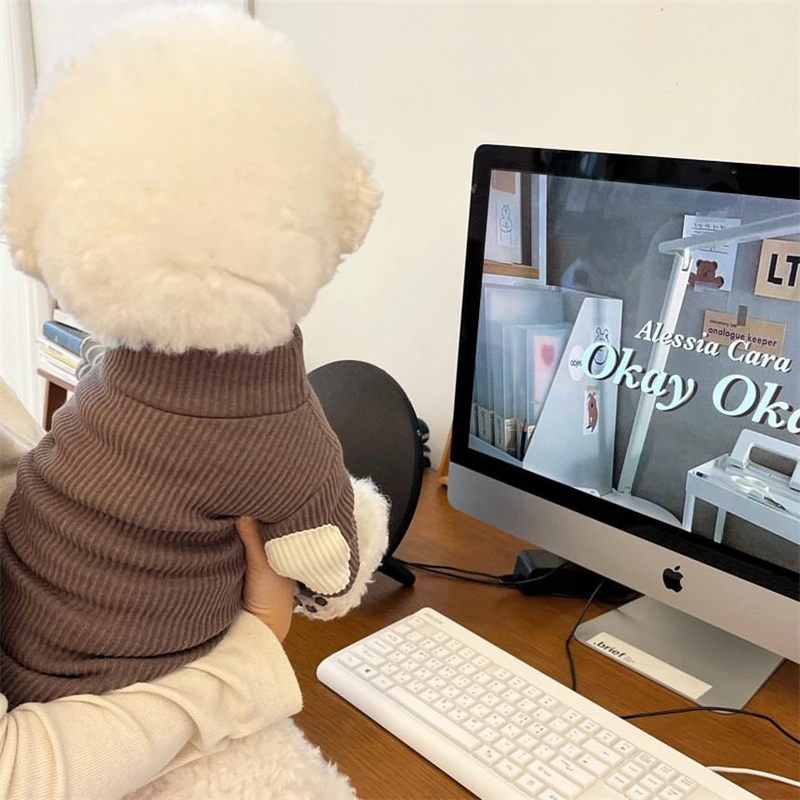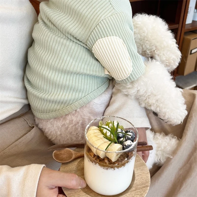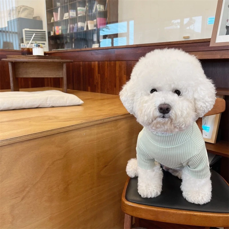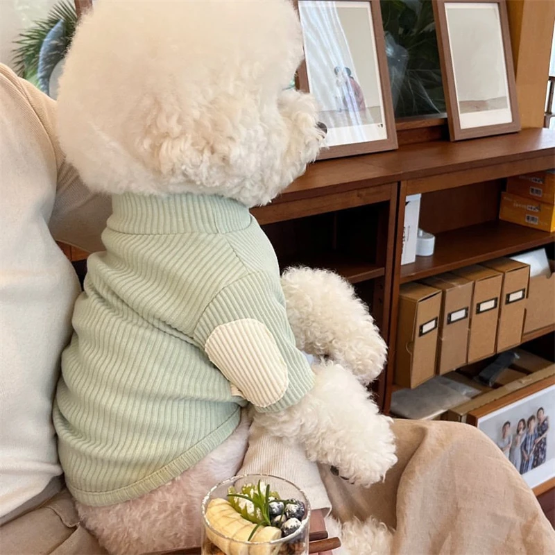 Sudadera de fondo suave de otoño para perros pequeños, monos de mascotas de Color sólido, camiseta de poliéster, Bulldog francés, cuello alto, ropa de gato