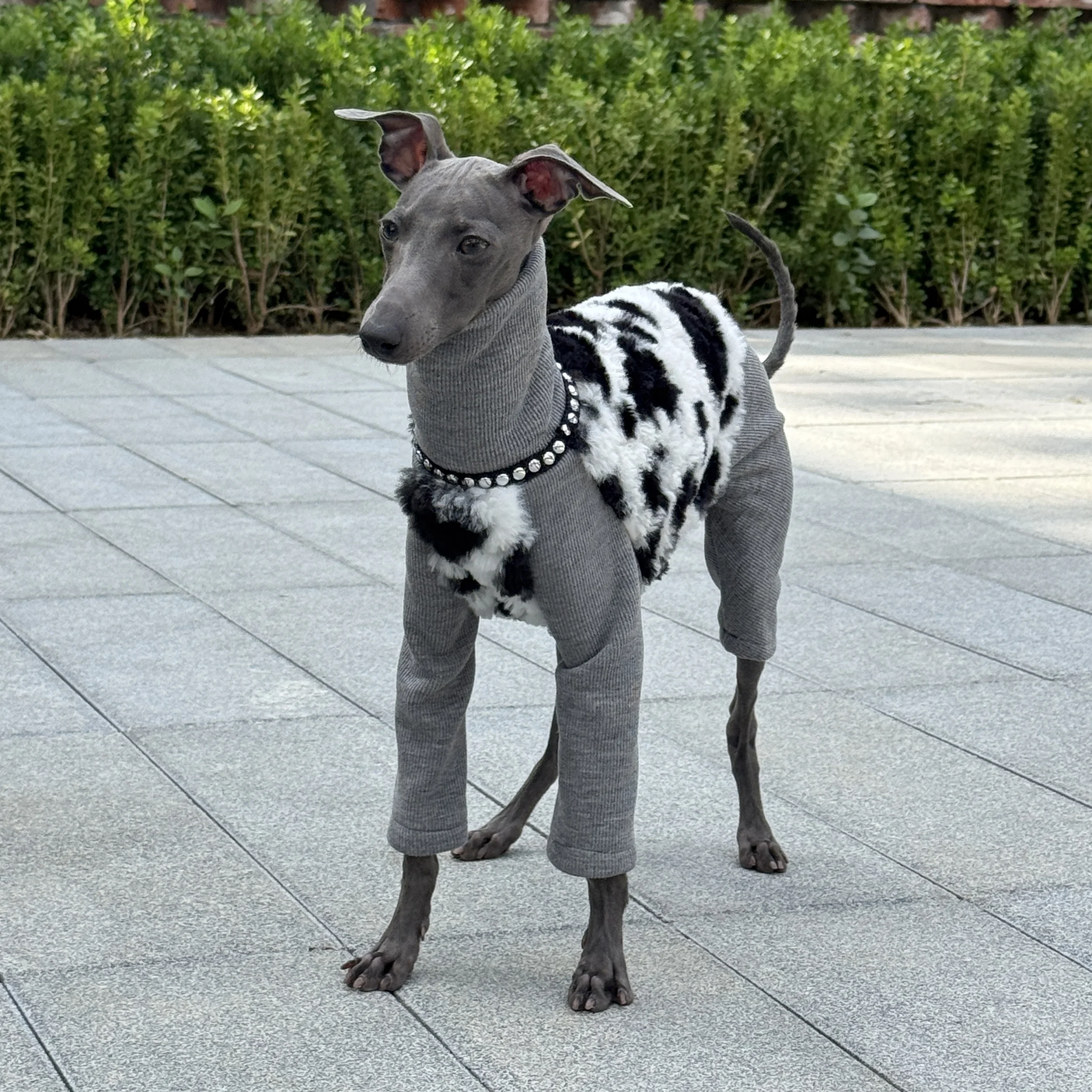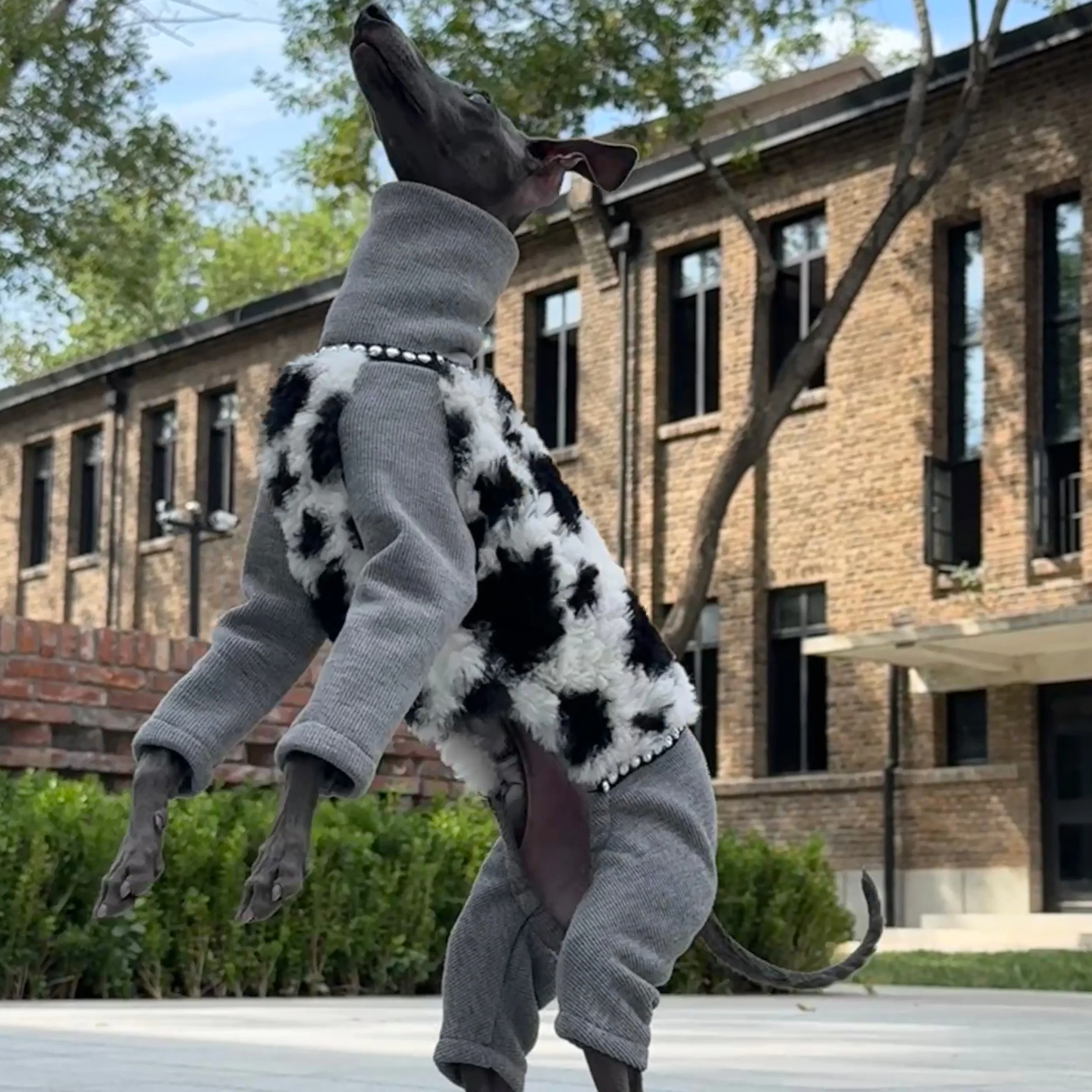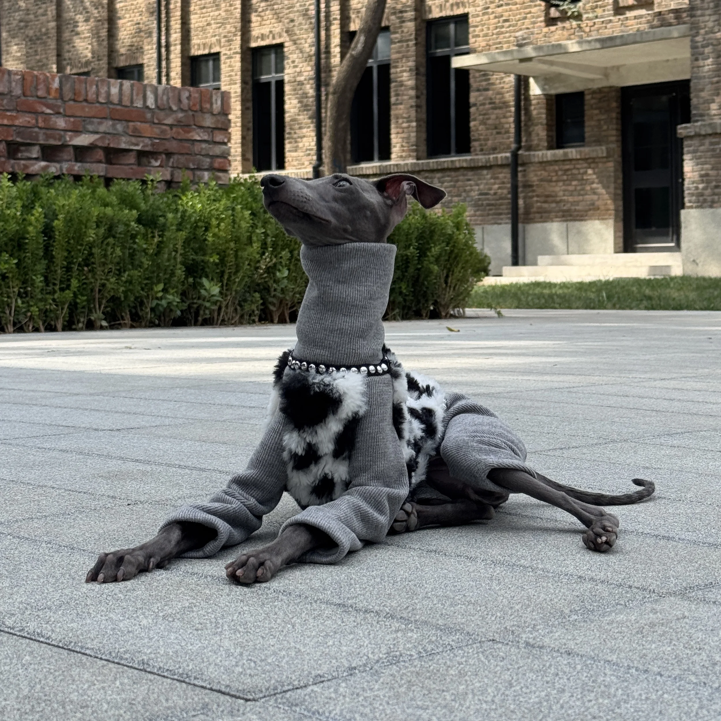 Sudadera gris de dos piezas con cuello alto para perros medianos, abrigo suave de invierno de 4 patas para galgo italiano, mono cálido para Whippet
