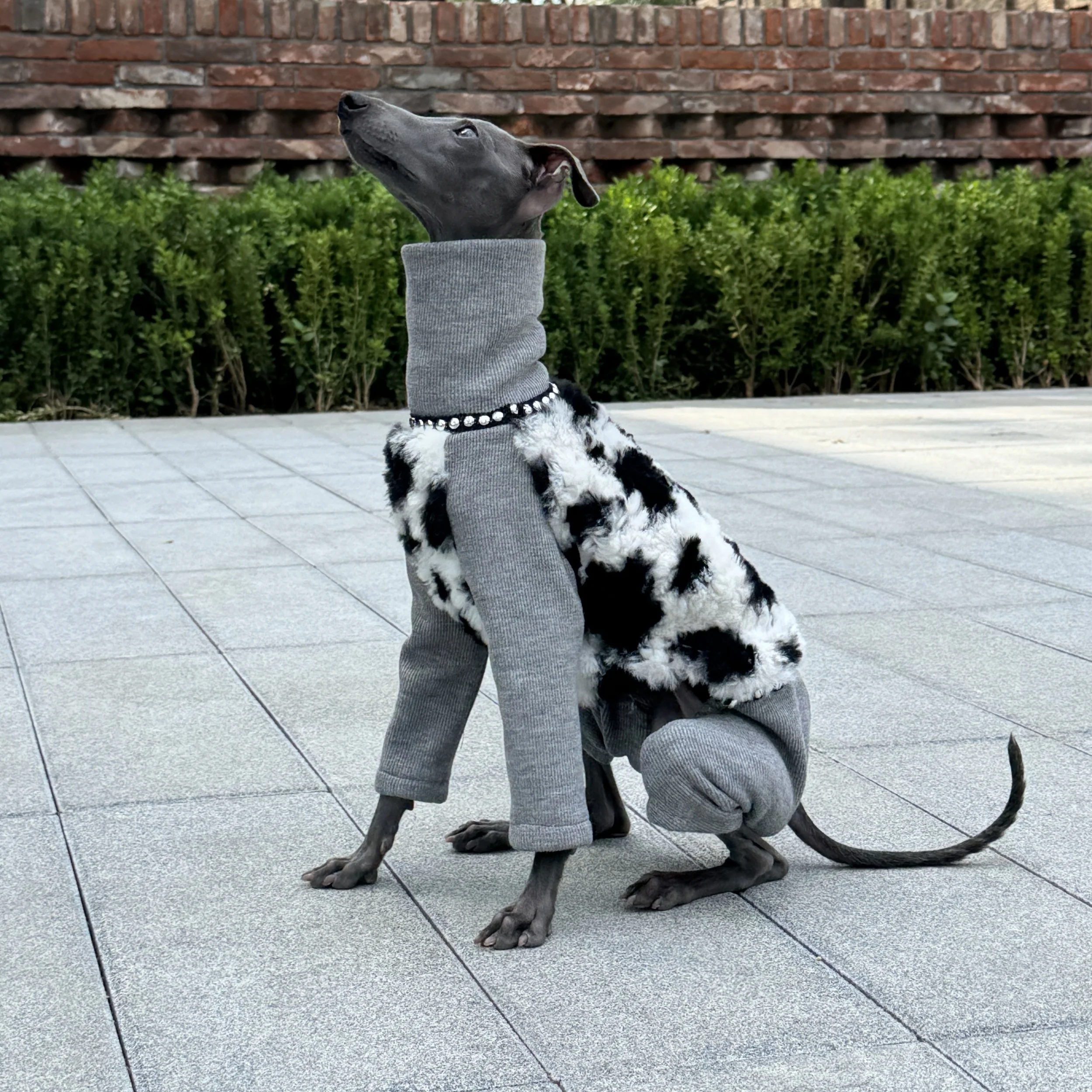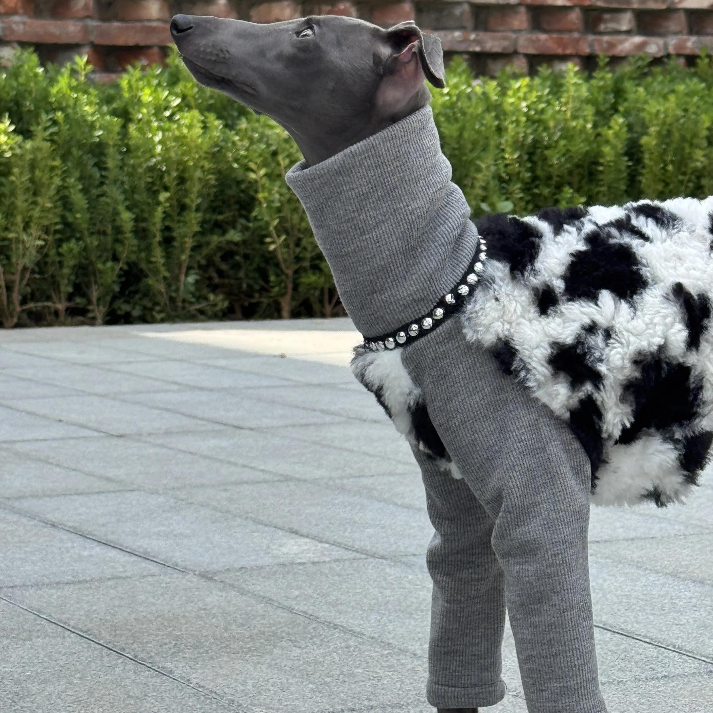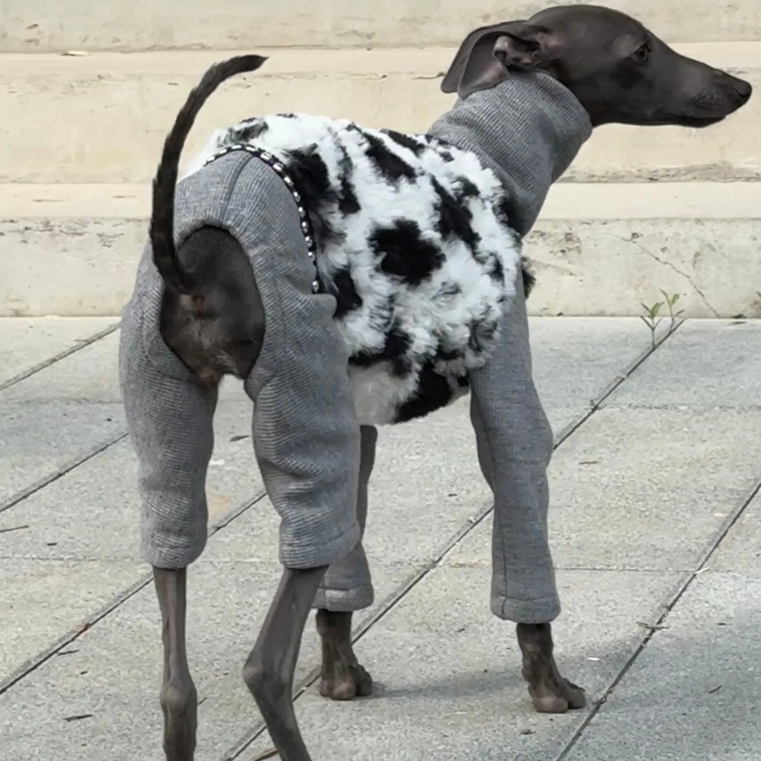 Sudadera gris de dos piezas con cuello alto para perros medianos, abrigo suave de invierno de 4 patas para galgo italiano, mono cálido para Whippet