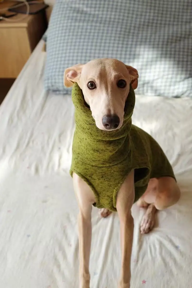 Sudadera gruesa de lana verde para perros Whippet en invierno, cálida manga de 2 patas, abrigo cálido para la cabeza con cuello alto para coriza italiana