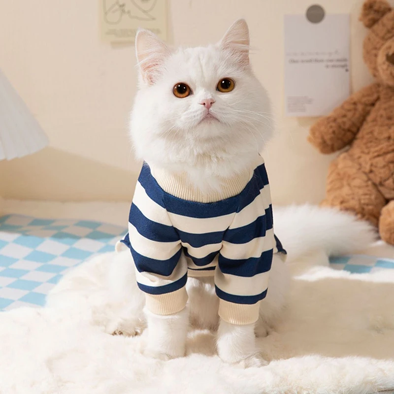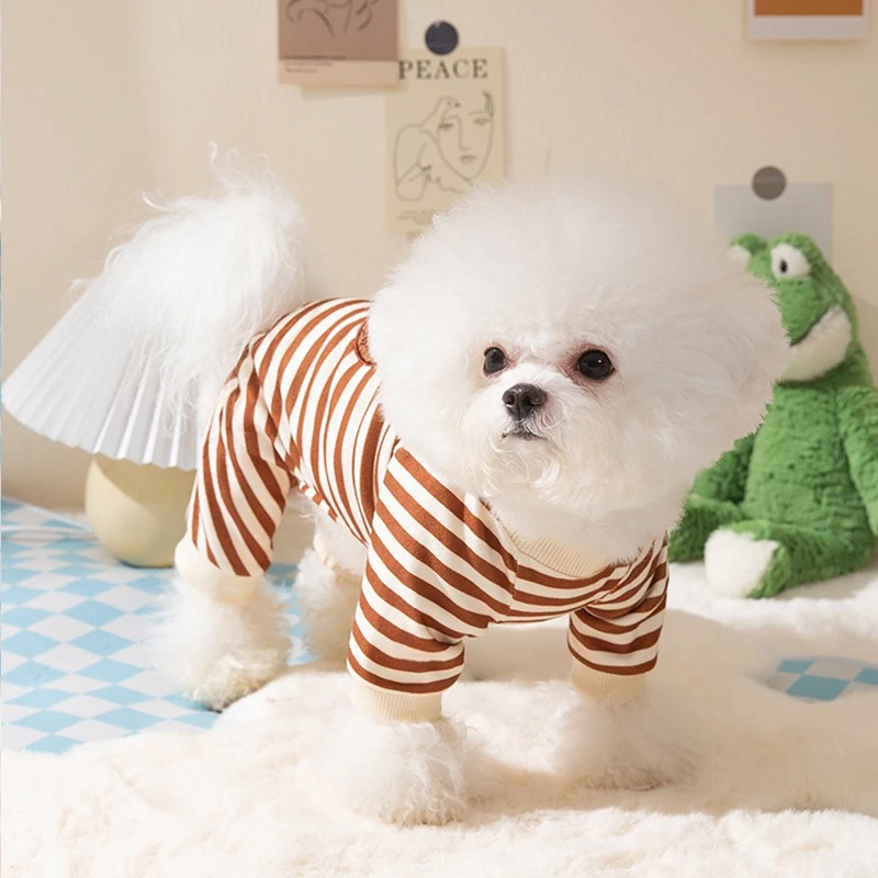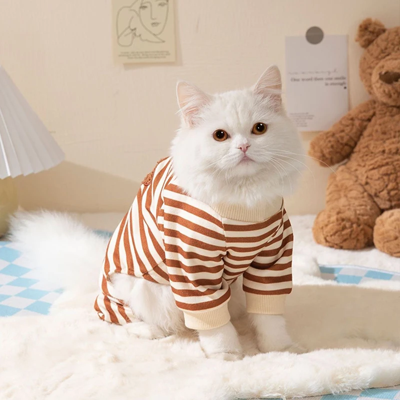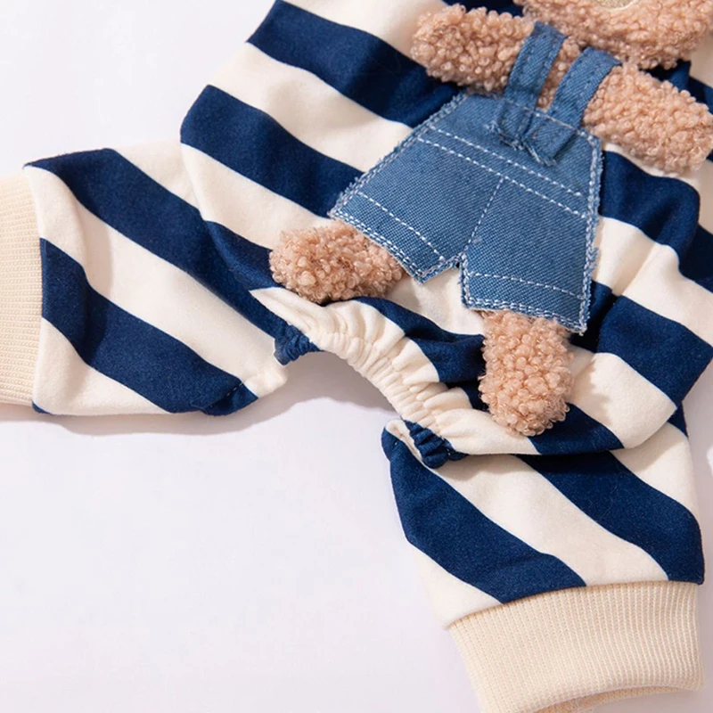 Sudadera de muñeco de oso de cuatro patas para perros, monos de gatito Unisex a rayas de otoño, camiseta, ropa para cachorros pequeños de Bulldog Francés