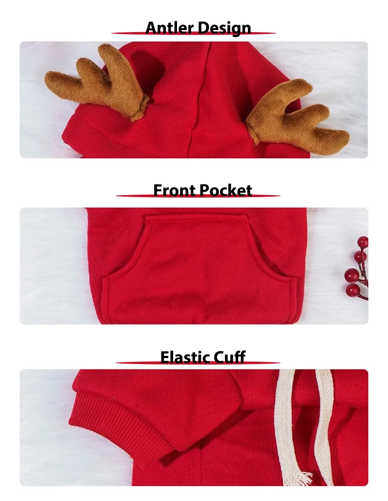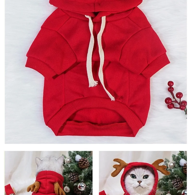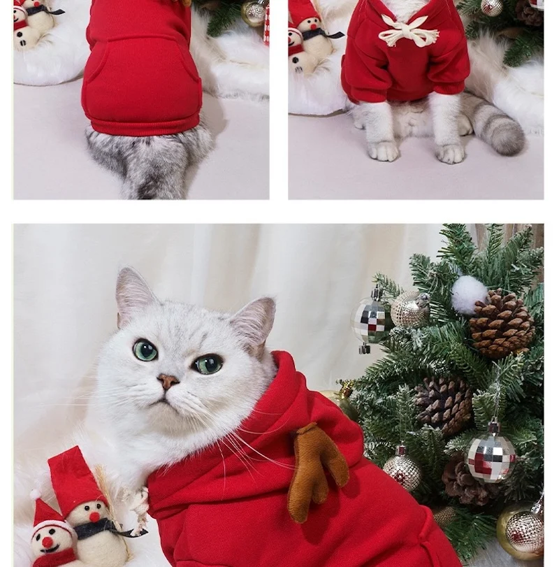 Sudadera navideña de ciervo para gatos, sudadera con capucha de lana ligera con bolsillo insertado para perros, disfraz cálido de invierno Unisex, monos medianos para cachorros
