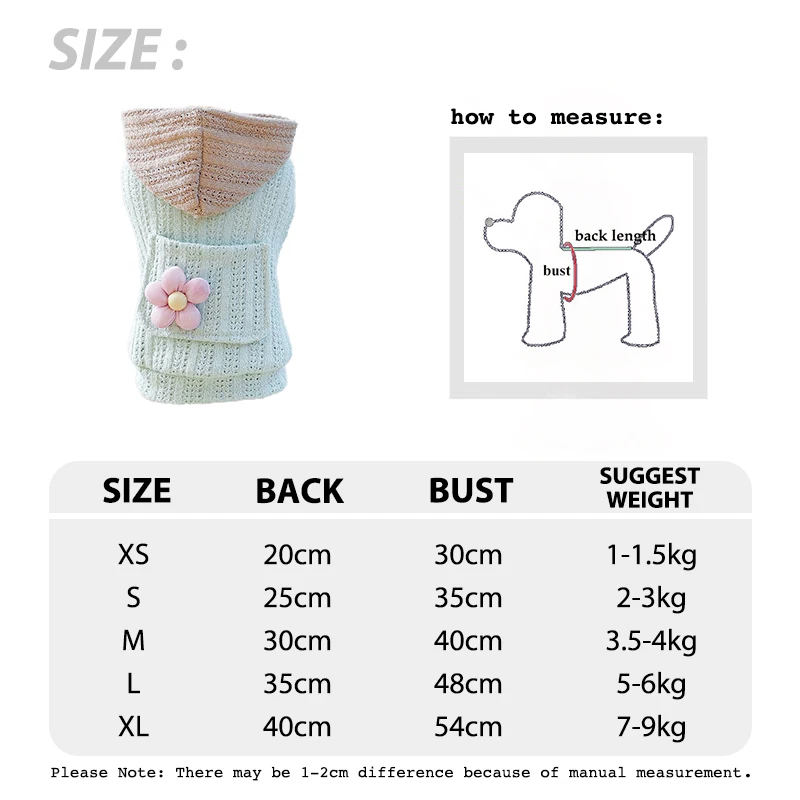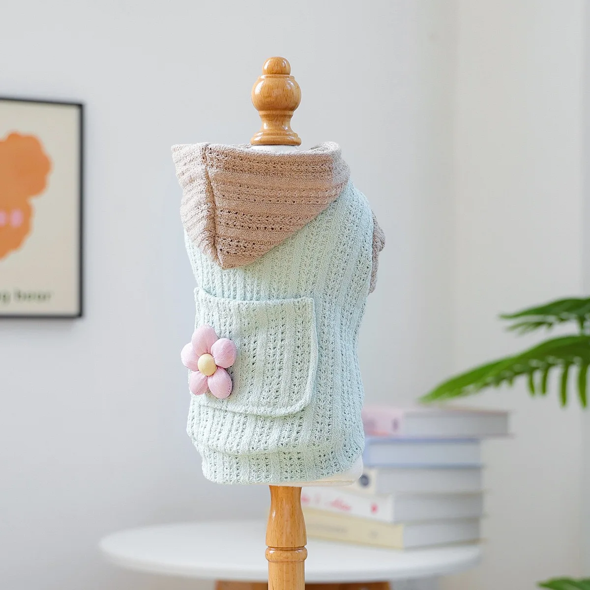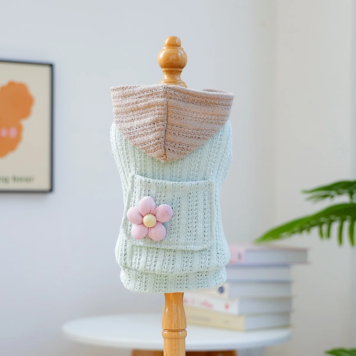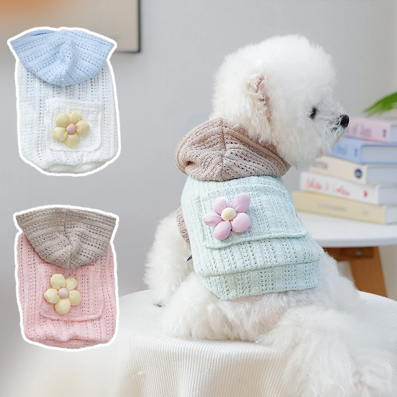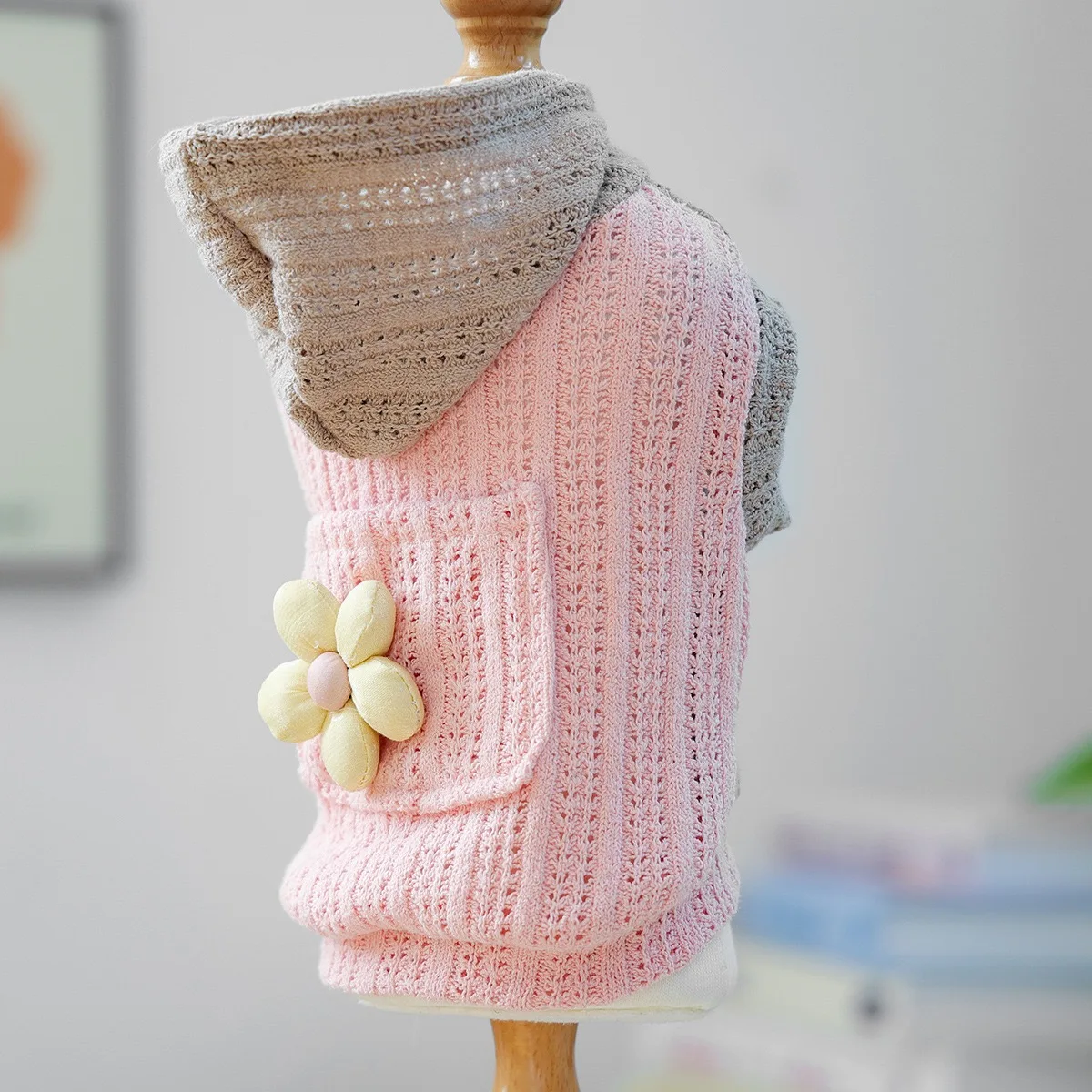 Sudadera de punto con agujeros florales para perros de compañía, ropa de otoño para gatos al aire libre, Sudadera con capucha, monos transpirables para cachorros pequeños, Chihuahua