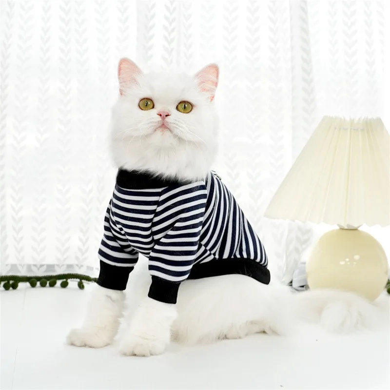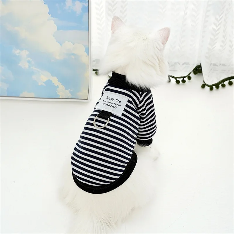 Sudadera a rayas cálida para otoño e invierno, ropa para perros y gatos con oso de peluche, ropa para cachorros de perros pequeños y medianos