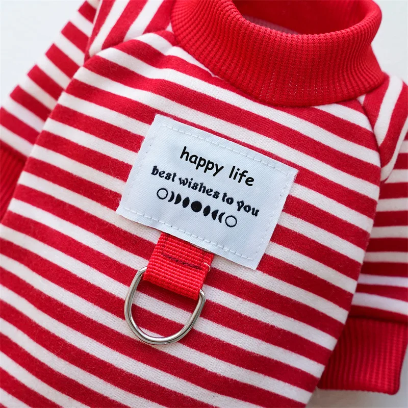 Sudadera a rayas cálida para otoño e invierno, ropa para perros y gatos con oso de peluche, ropa para cachorros de perros pequeños y medianos - imagen 4