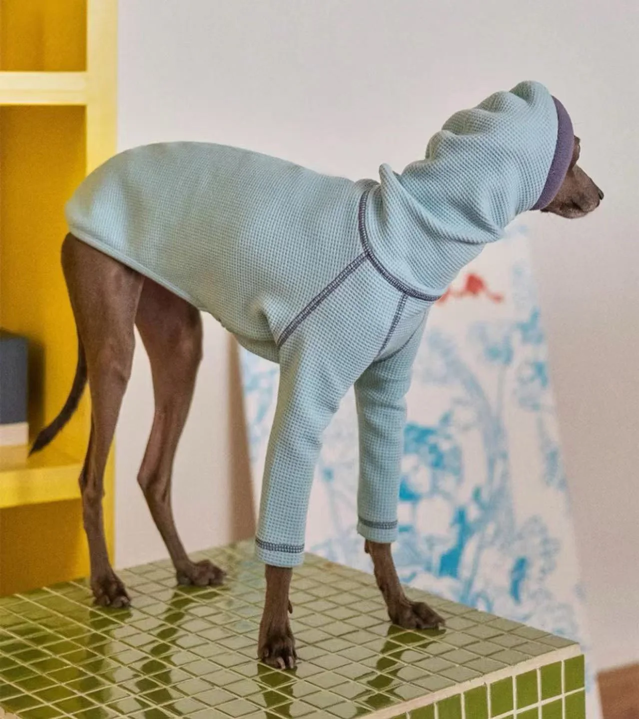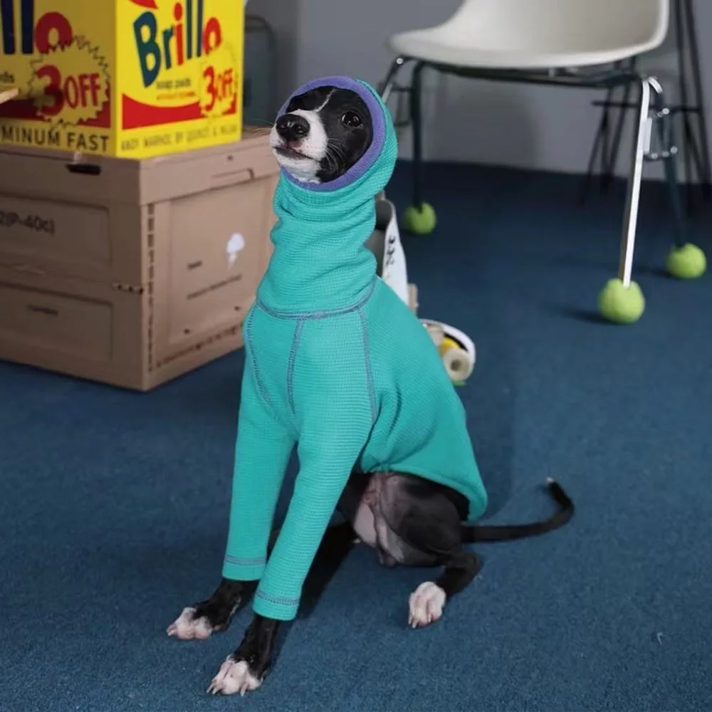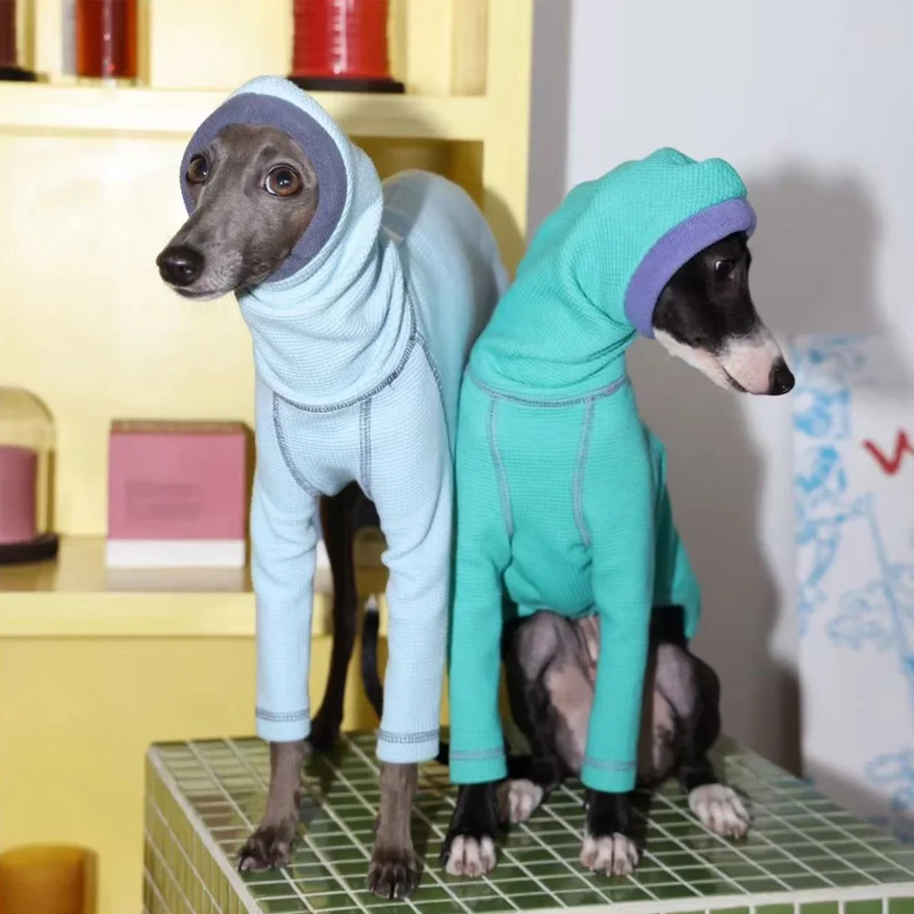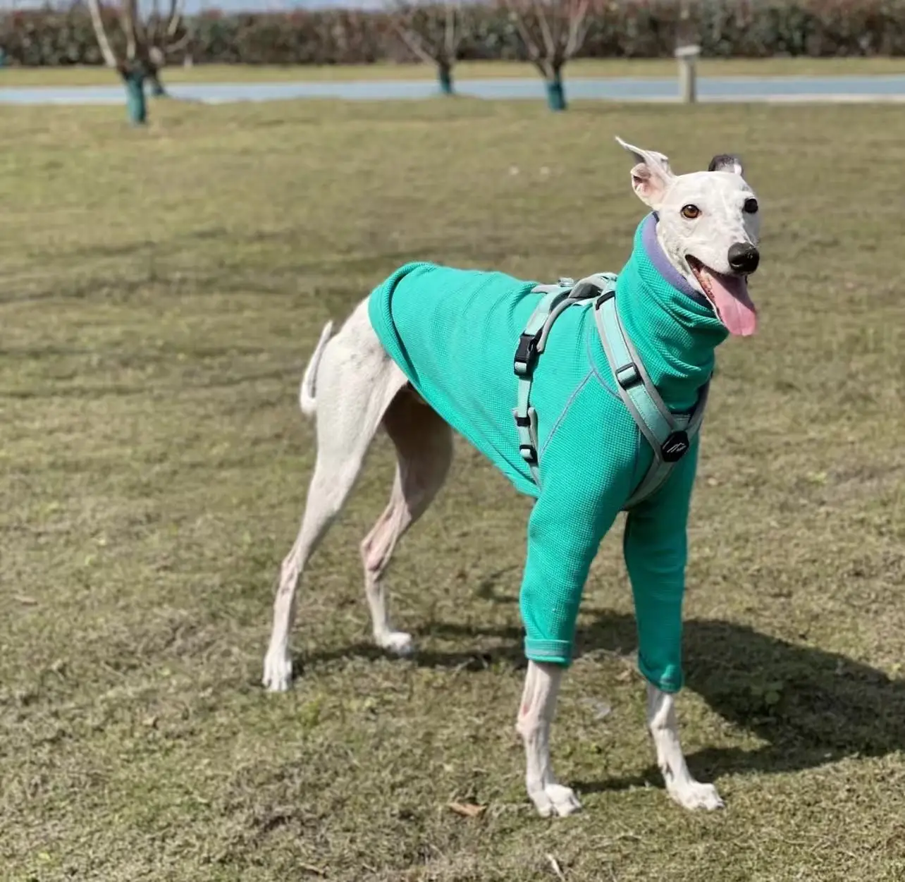 Sudadera verde menta de cuello alto a la moda para pequeños, abrigo suave de manga larga de otoño gris italiano medio para perro Whippet en primavera