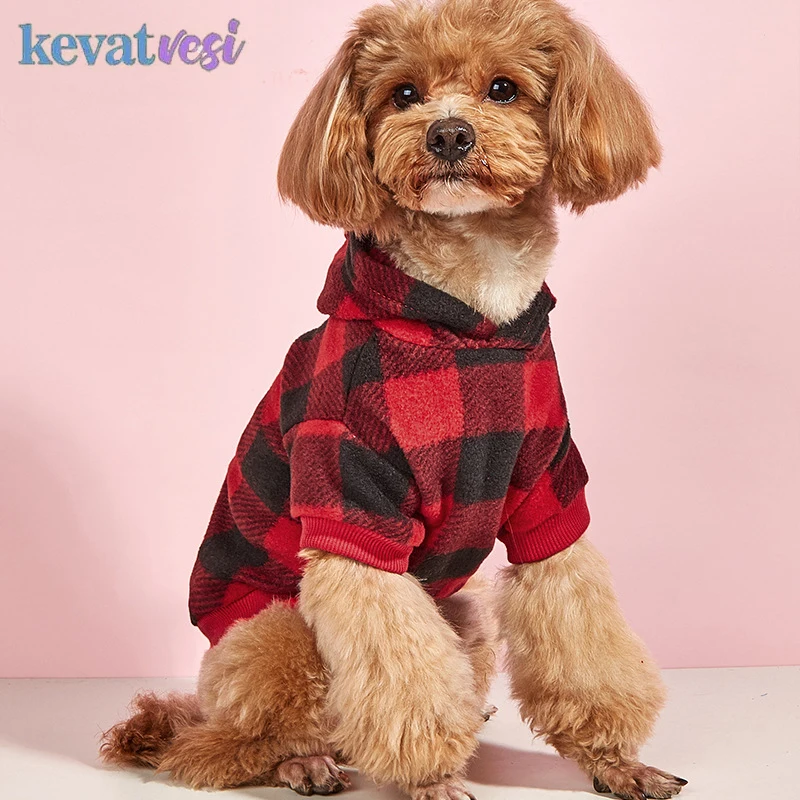 Sudaderas con capucha cálidas de invierno para perros, ropa gruesa para mascotas para perros pequeños y medianos, abrigo cómodo a cuadros para cachorros, ropa de peluche para Chihuahua