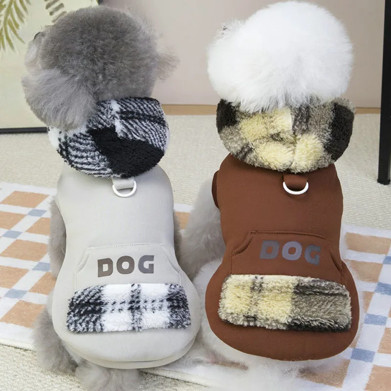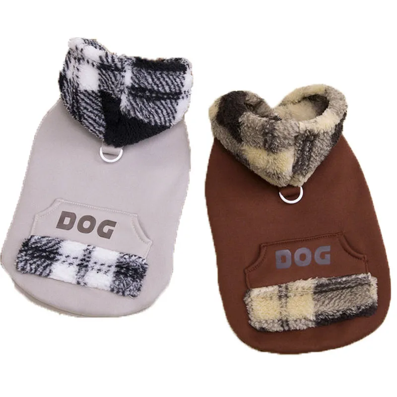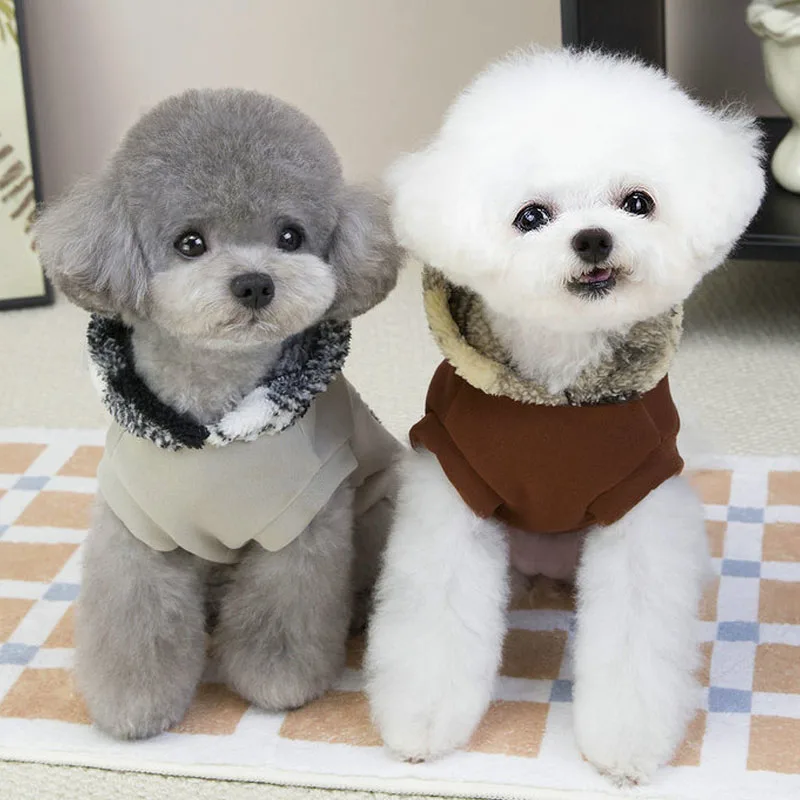 Sudaderas con capucha cálidas para otoño e invierno, ropa para perros, sudadera de manga corta gris y marrón para perros pequeños, disfraces para cachorros, salchicha, Pug