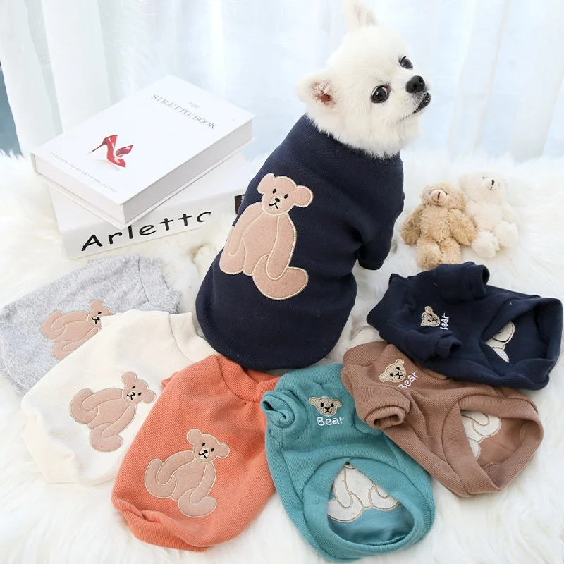 Sudaderas con capucha para perros con estampado de dibujos animados, ropa cálida de otoño para perros, sudaderas de moda para cachorros, sudaderas con capucha de gato con bordado de oso, jersey para mascotas, trajes para perros