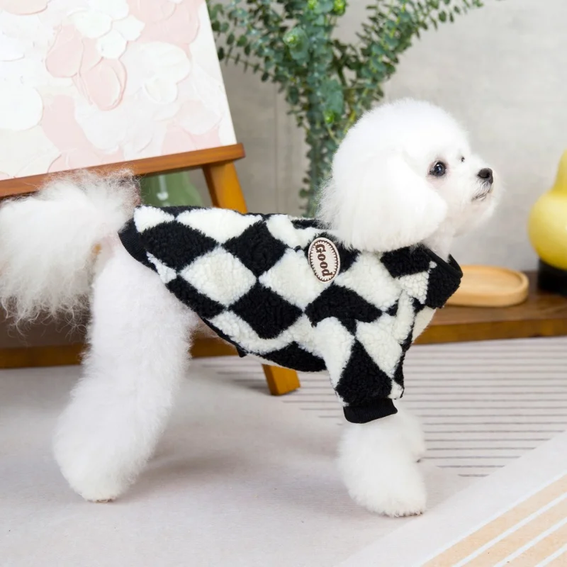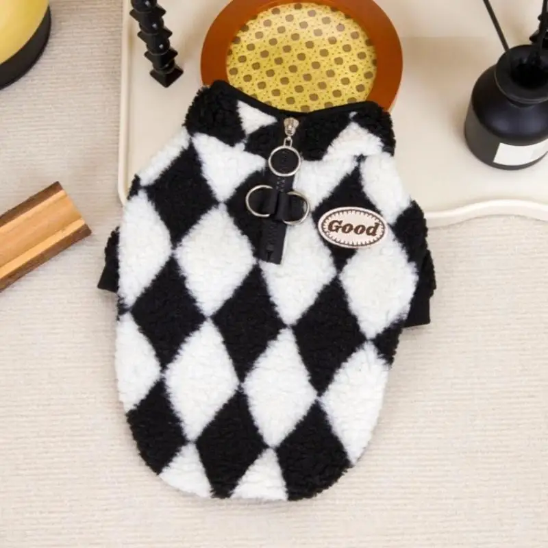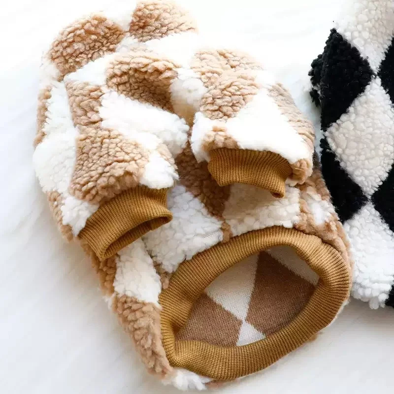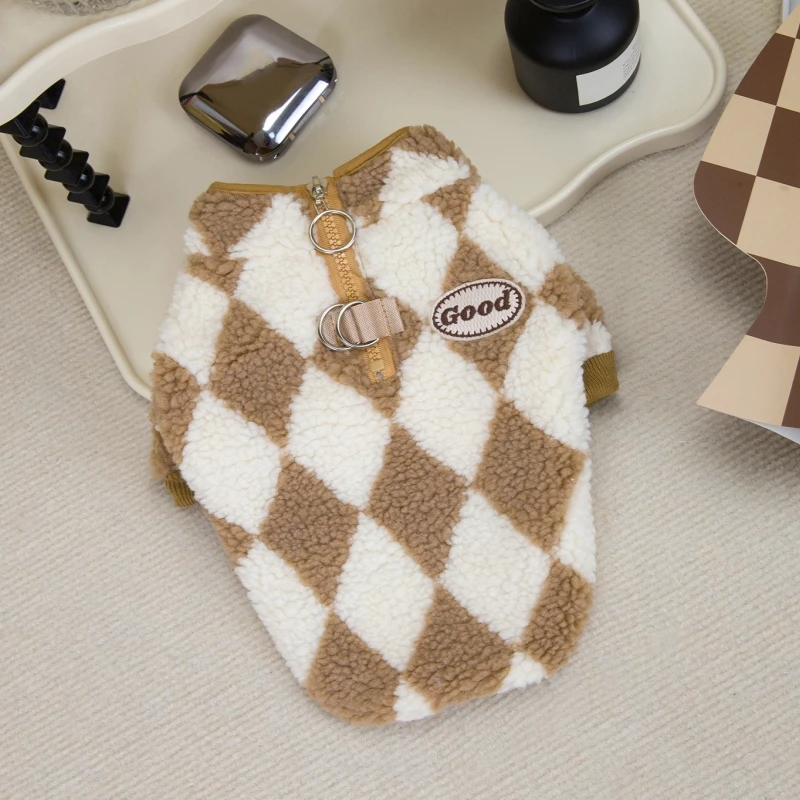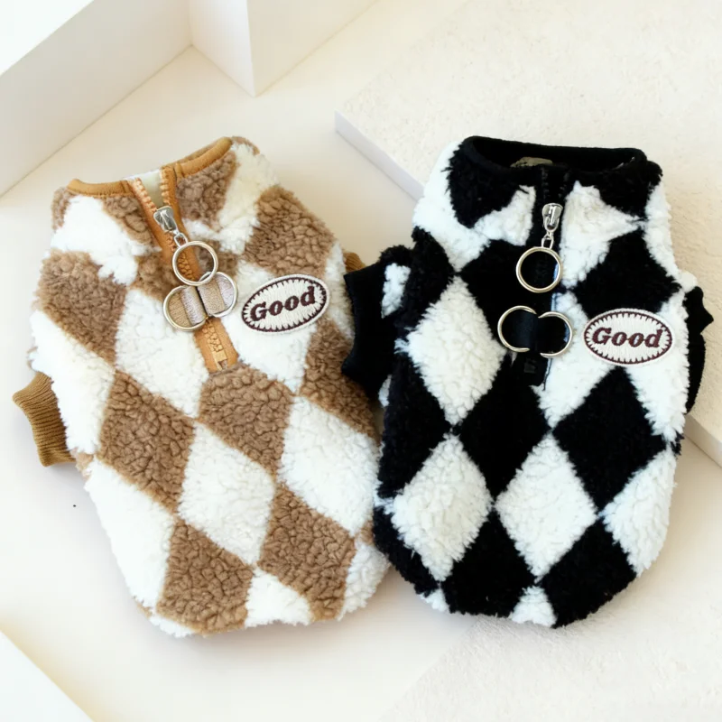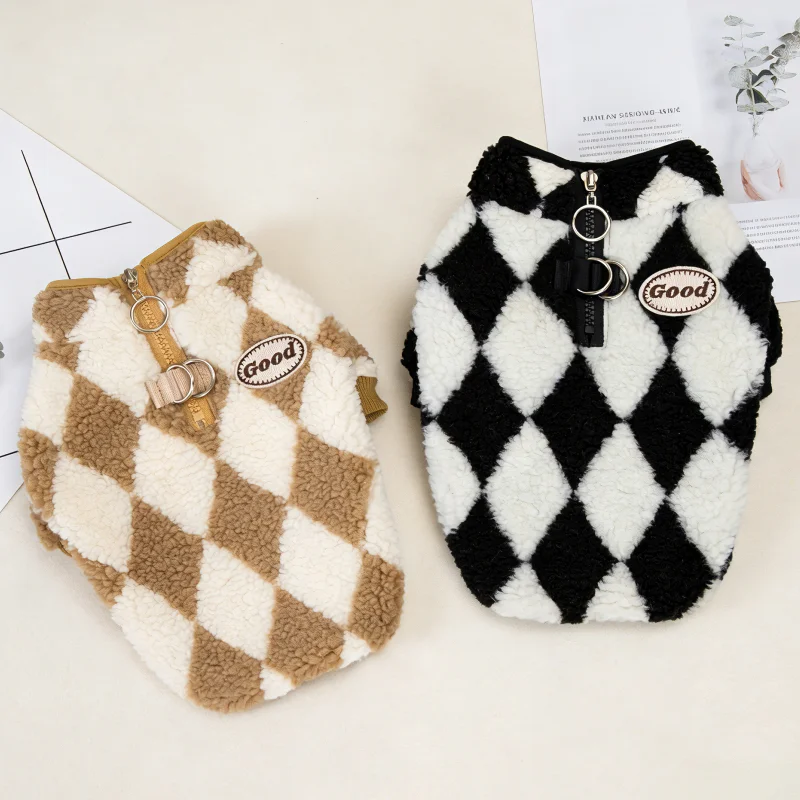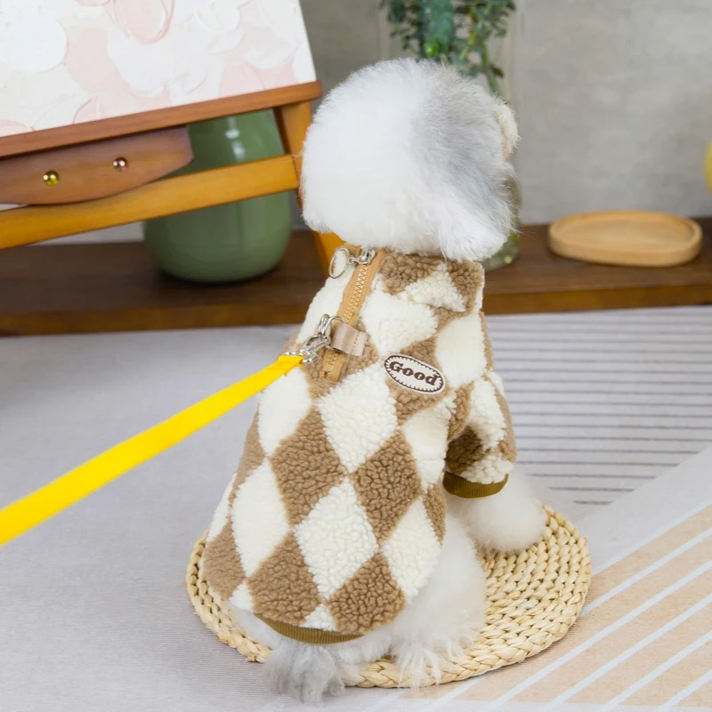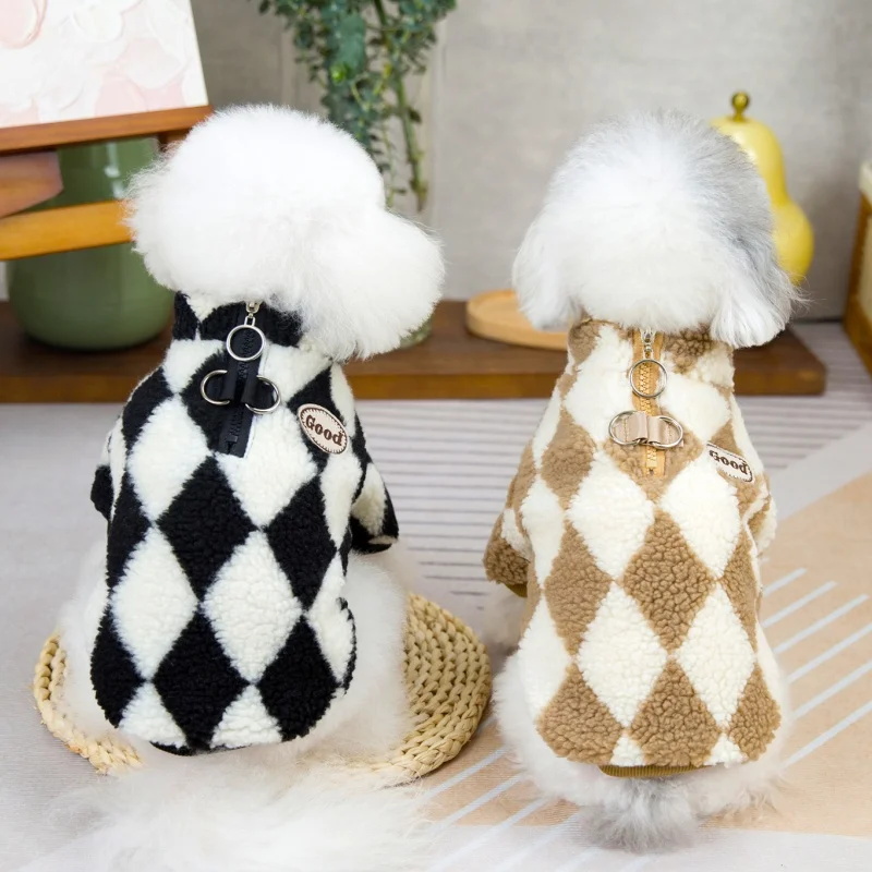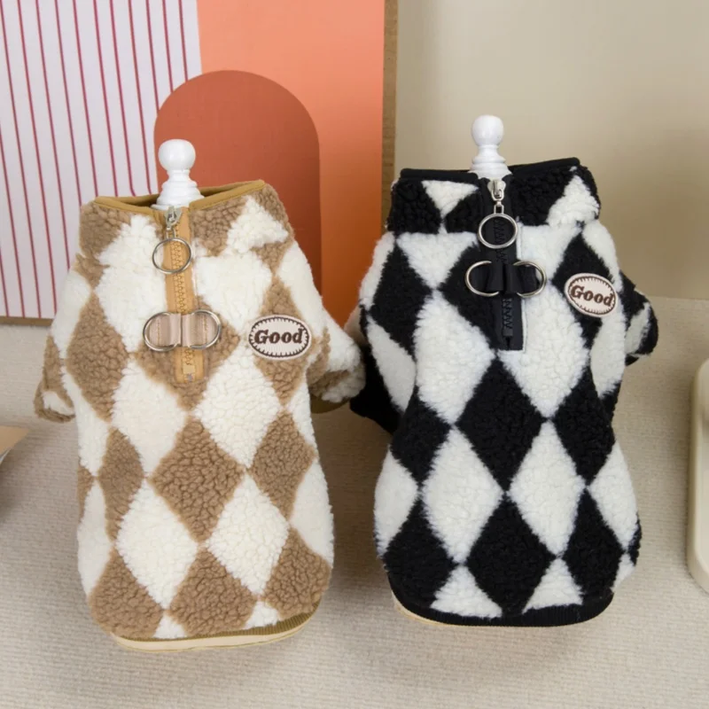 Sudaderas con capucha de felpa de invierno para perros con anillo en D, ropa suave y cálida para perros, jerséis bonitos a cuadros para cachorros, chaqueta con capucha para gatos a la moda, abrigo para mascotas, ropa