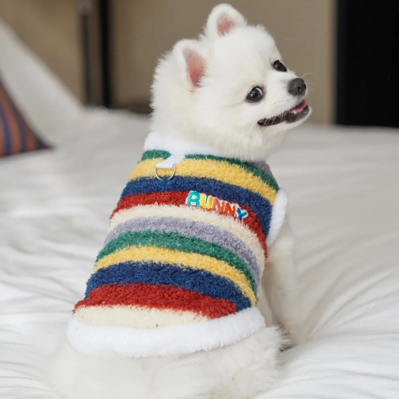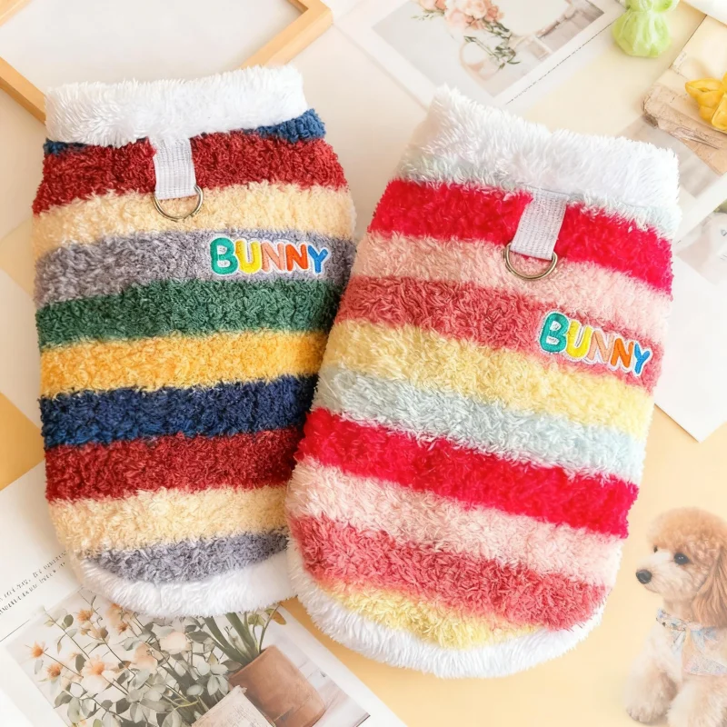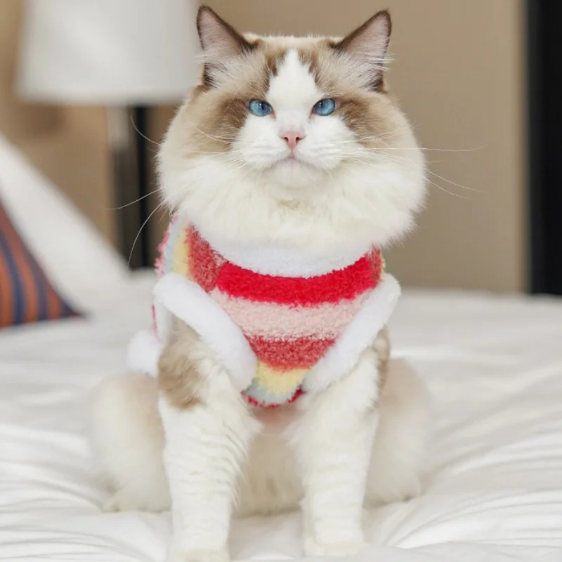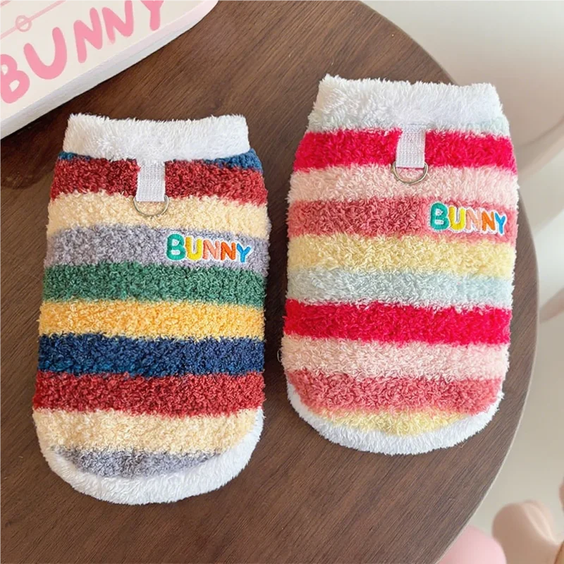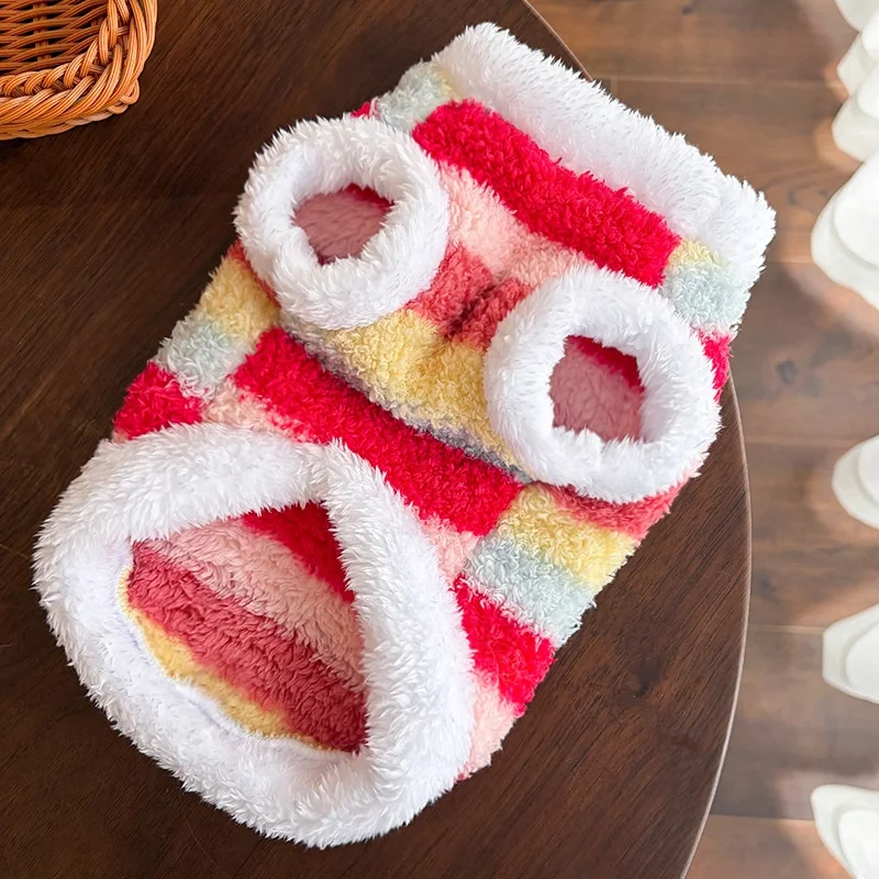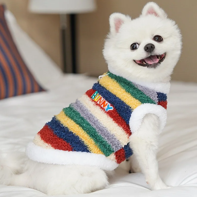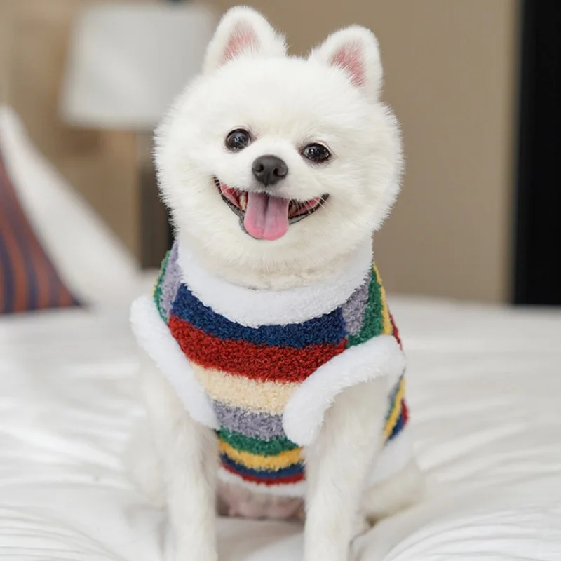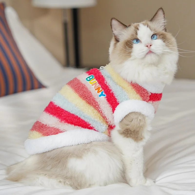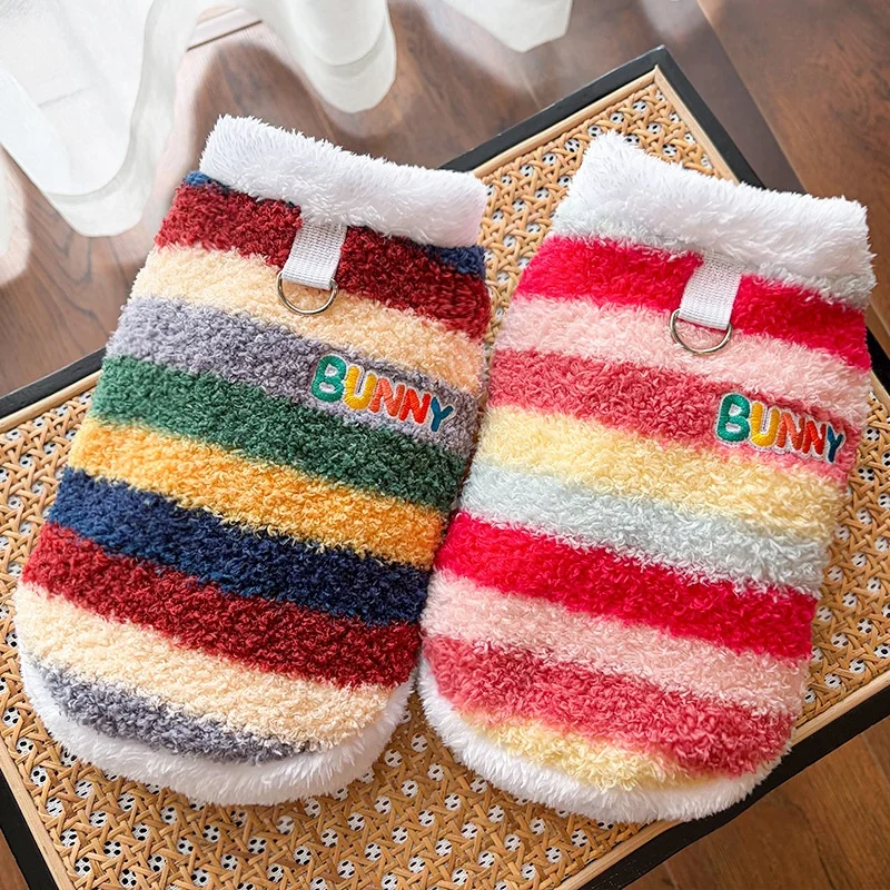 Sudaderas con capucha de felpa para perros de invierno, ropa suave y bonita para perros, chaleco cálido de felpa para cachorros, jerseys, sudaderas con capucha de gato a rayas de arcoíris, disfraz para mascotas Chihuahua