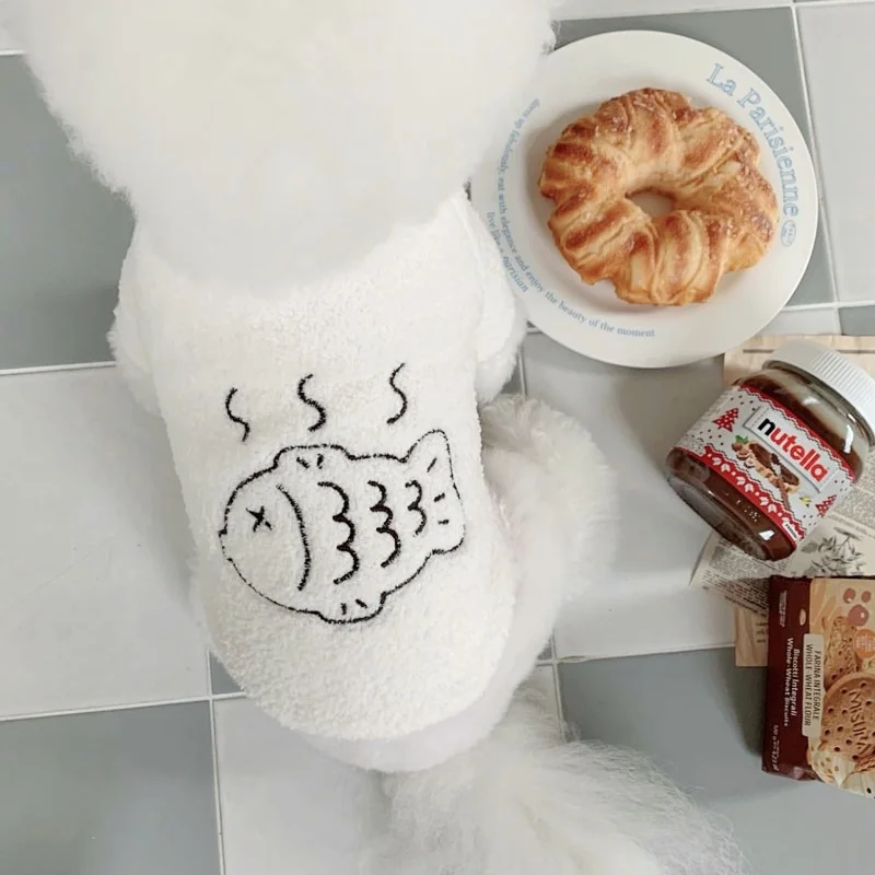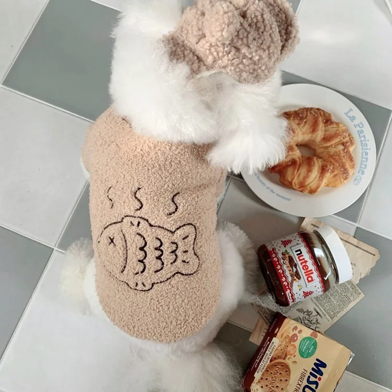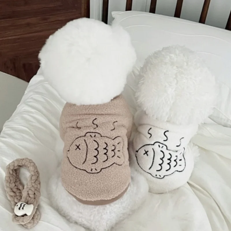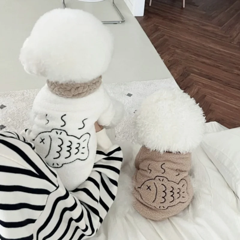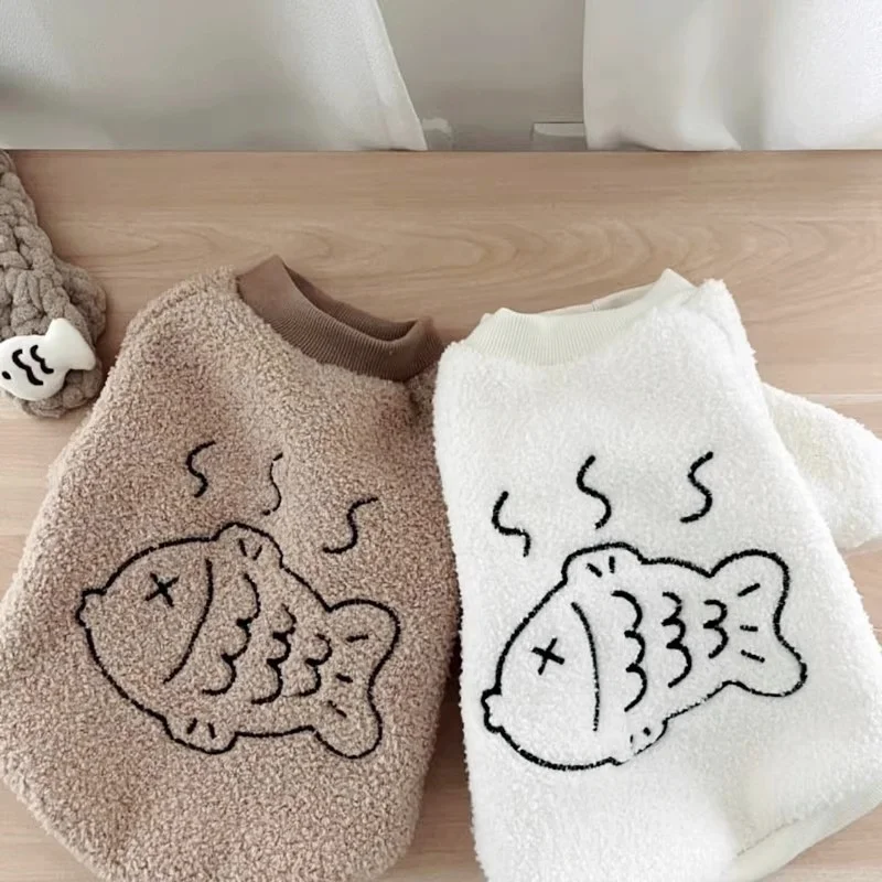 Sudaderas con capucha de felpa a la moda para perros, ropa cálida y suave para perros, sudaderas con estampado de peces para cachorros, sudaderas de gato de otoño, jerséis para mascotas, ropa de Chihuahua