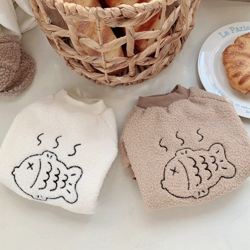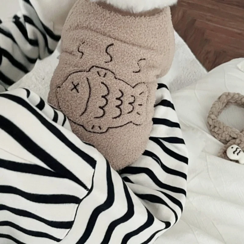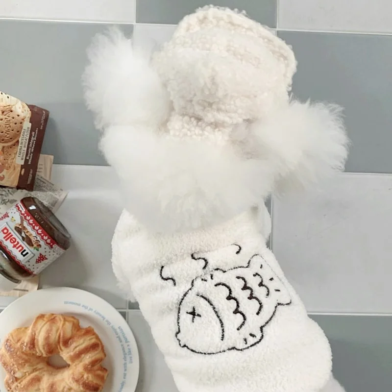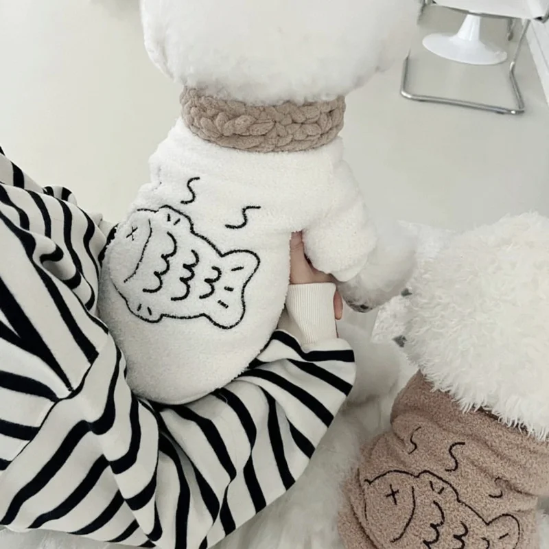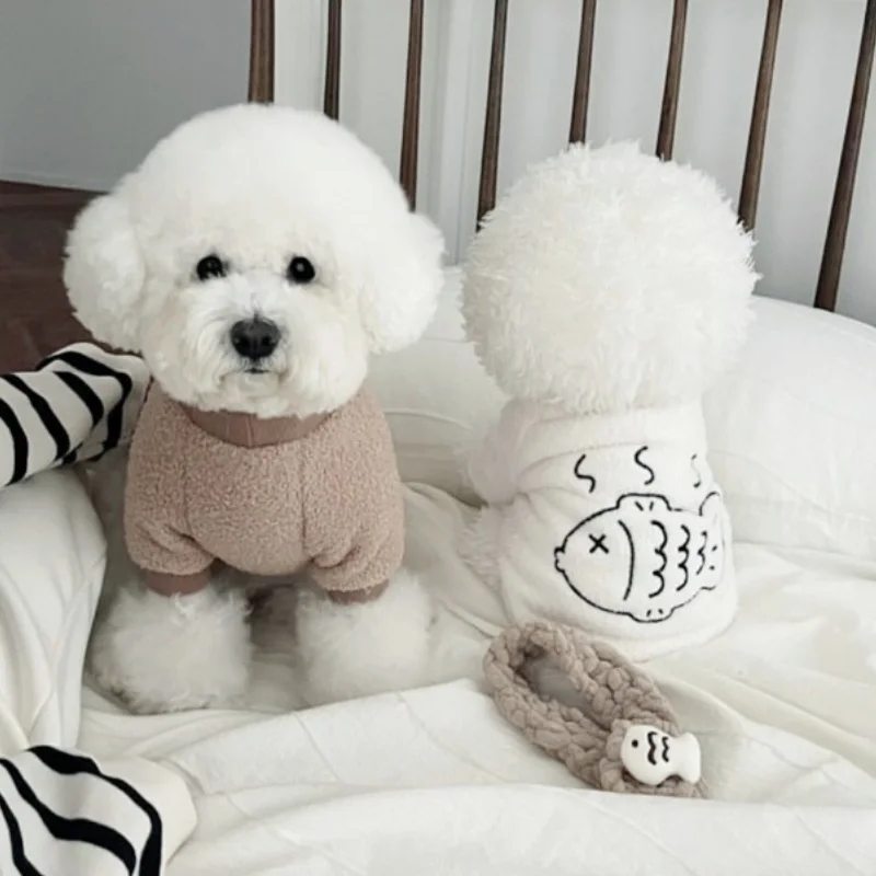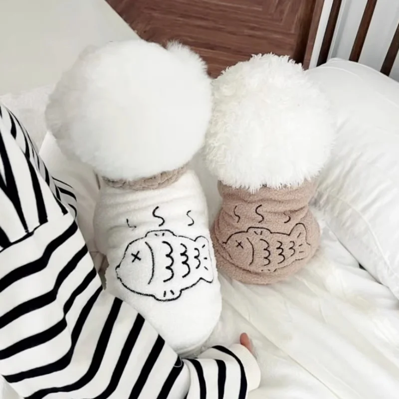 Sudaderas con capucha de felpa a la moda para perros, ropa cálida y suave para perros, sudaderas con estampado de peces para cachorros, sudaderas de gato de otoño, jerséis para mascotas, ropa de Chihuahua