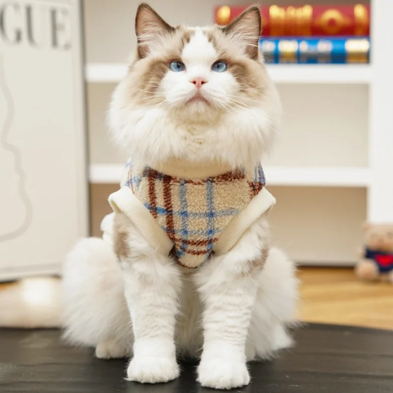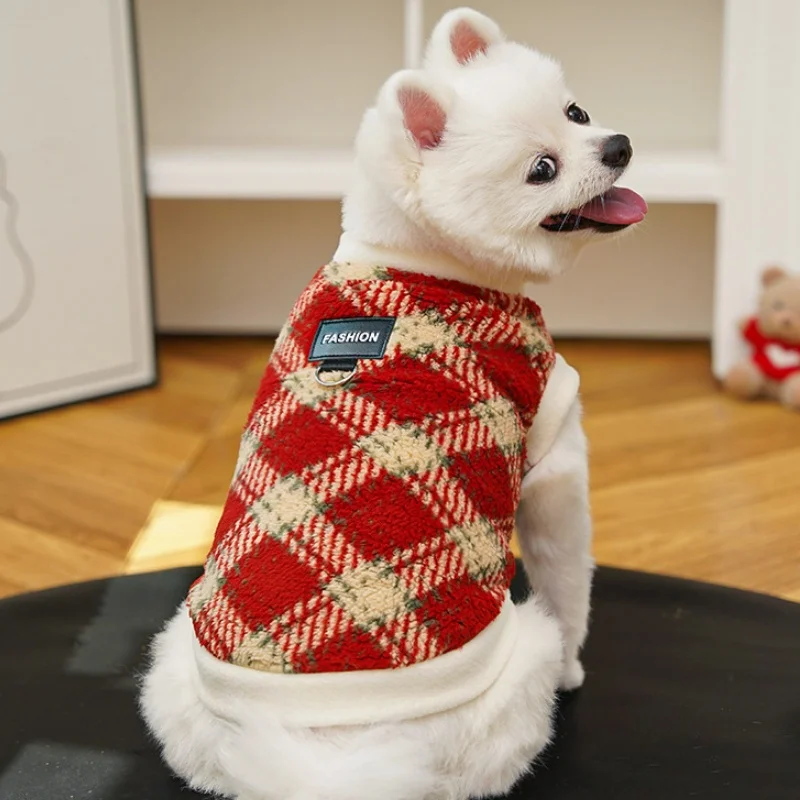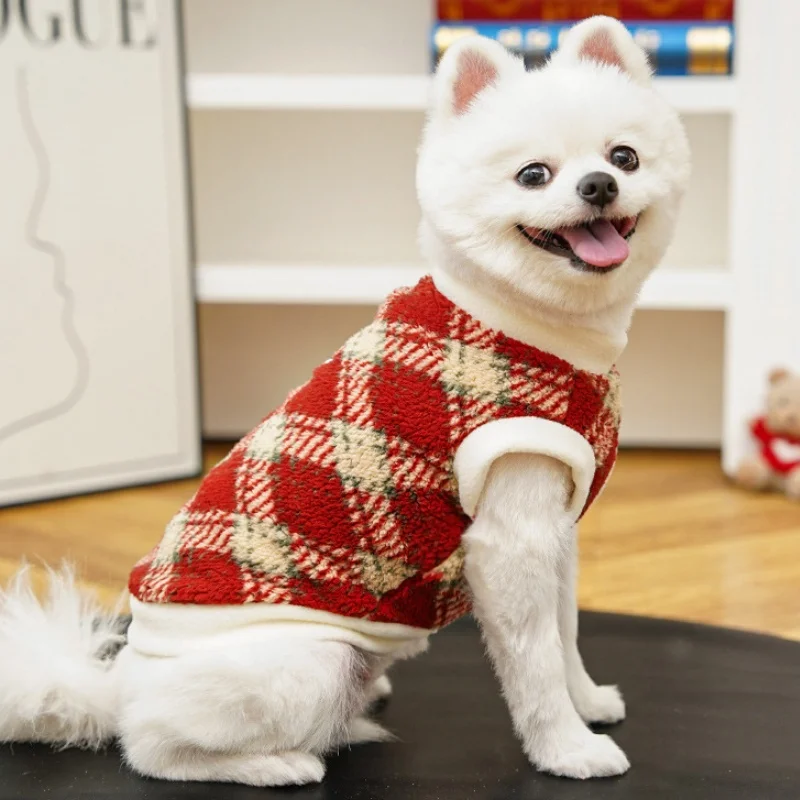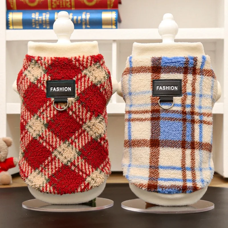 Sudaderas con capucha de lana a la moda para perros, ropa cálida y suave para perros, suéter bonito a cuadros para cachorros, jerseys para gatos de invierno, sudaderas con capucha para mascotas, trajes Bichon de caniche