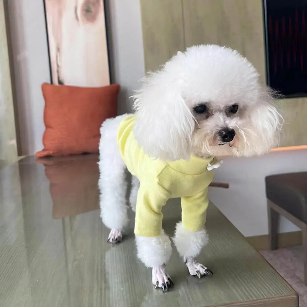 Con textura suave, diseño de dos piernas y cuello alto, esta camisa es cálida para mascotas, agradable para la piel y cómoda para que su mascota la use.