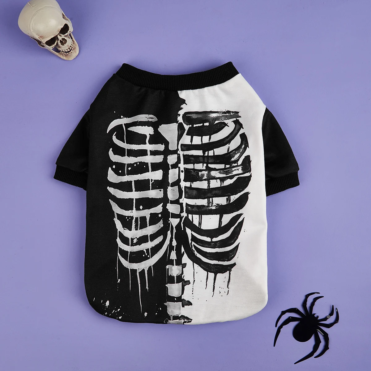 Sudaderas con capucha para perros y gatos, camisas suaves y cómodas con estampado de esqueleto fresco, pijama de Halloween para perros pequeños y medianos