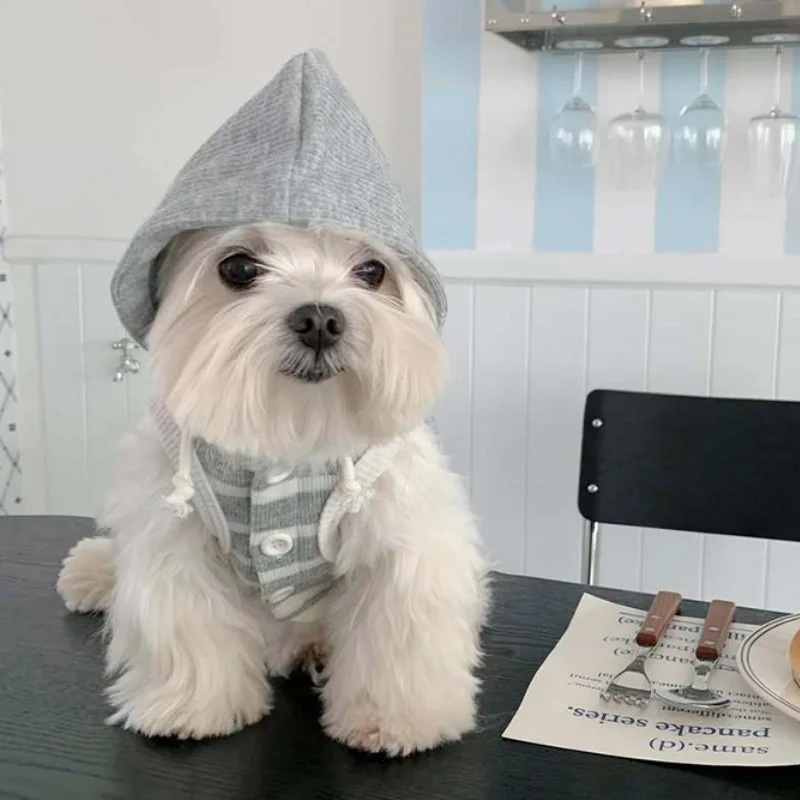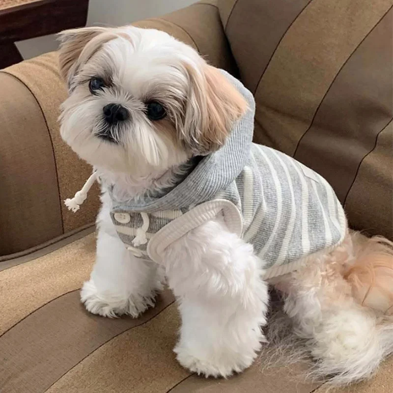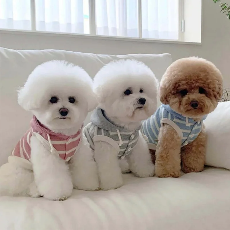 Sudaderas con capucha para perros a la moda, chaqueta, ropa de otoño para perros, chaleco suave y cálido para cachorros, abrigo, sudaderas con capucha de gato a rayas bonitas, sudaderas para mascotas, disfraces Bichon
