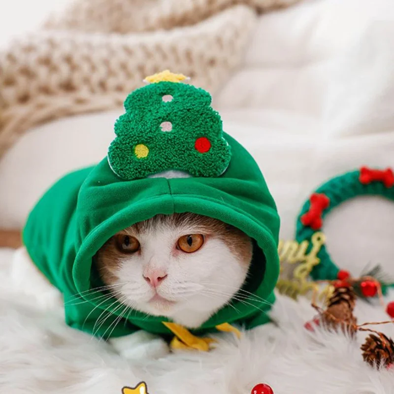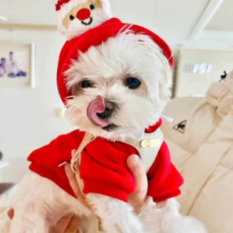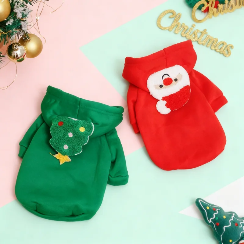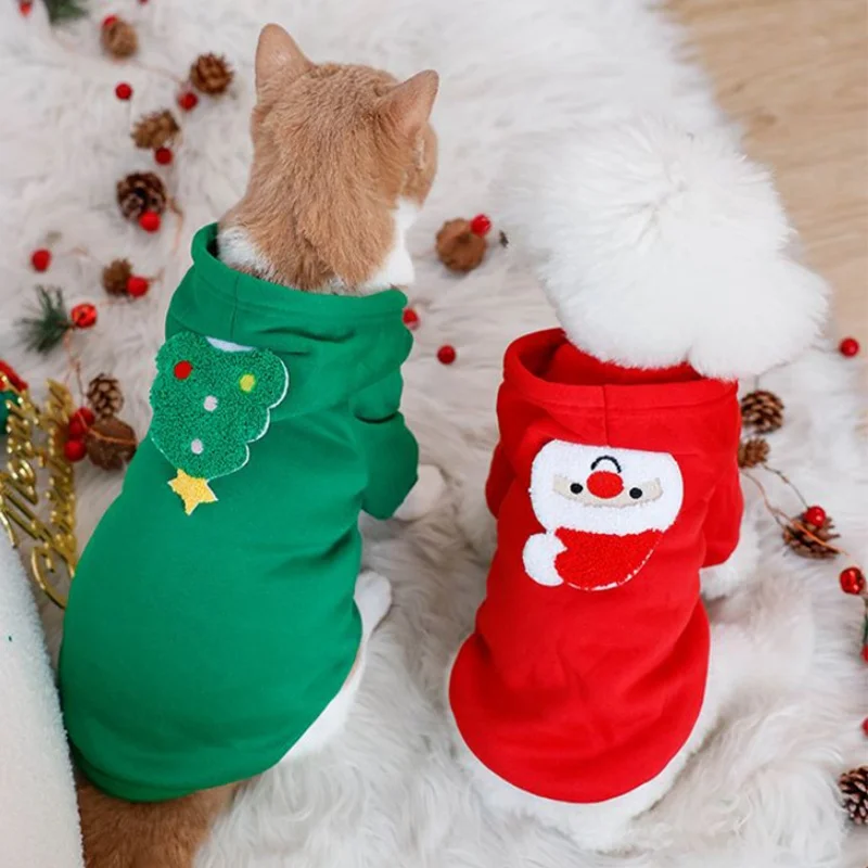 Sudaderas con capucha para perros a la moda, ropa navideña para perros, decoración de Papá Noel, jerséis para cachorros, sudaderas cálidas de invierno para gatos, sudaderas para mascotas, ropa de Yorkshire