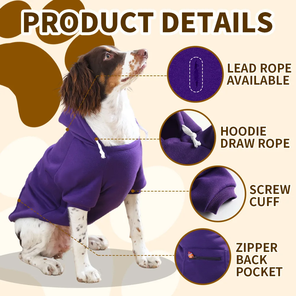 Sudaderas con capucha para perros, temporada de otoño e invierno, ropa para perros grandes, bolsillo con cremallera sólida, chaqueta Labrador de Bulldog Francés, ropa para cachorros