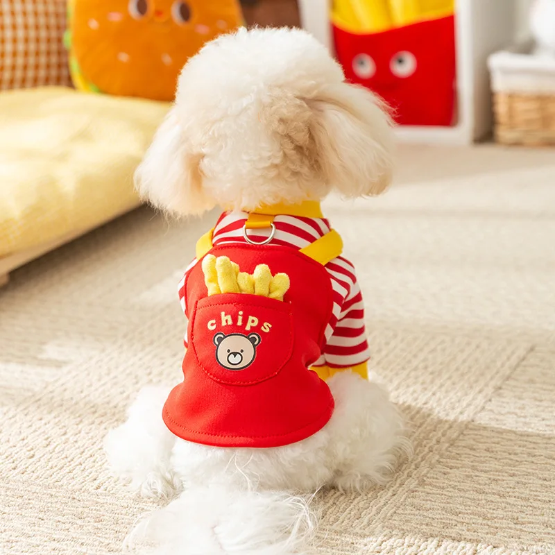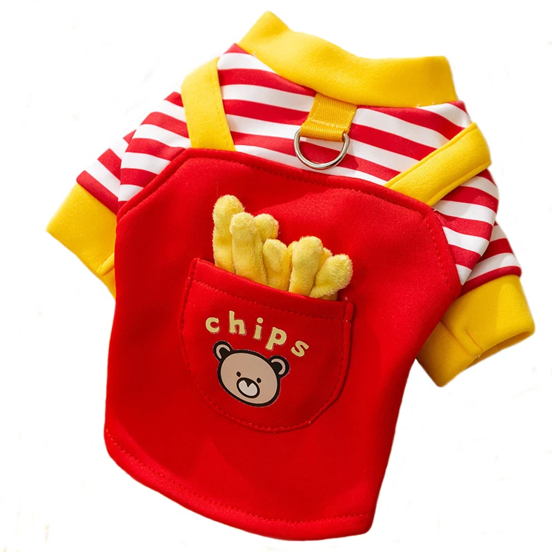 Sudaderas con capucha para perros y patatas fritas a rayas rojas, ropa para perros pequeños y medianos, disfraz para cachorros y gatos, abrigo tipo jersey para mascotas Chiwawa