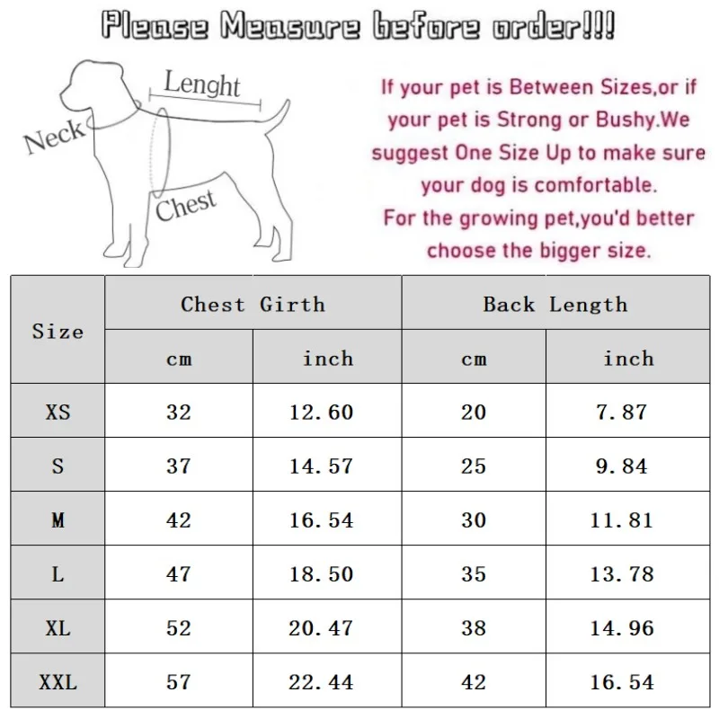 XXL: Pecho 57cm/22,44''; Longitud 42 cm/16,54''.