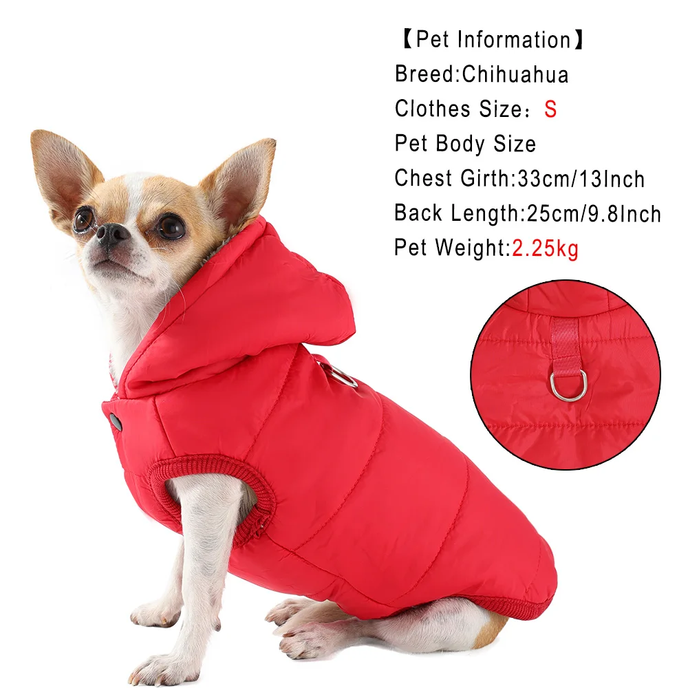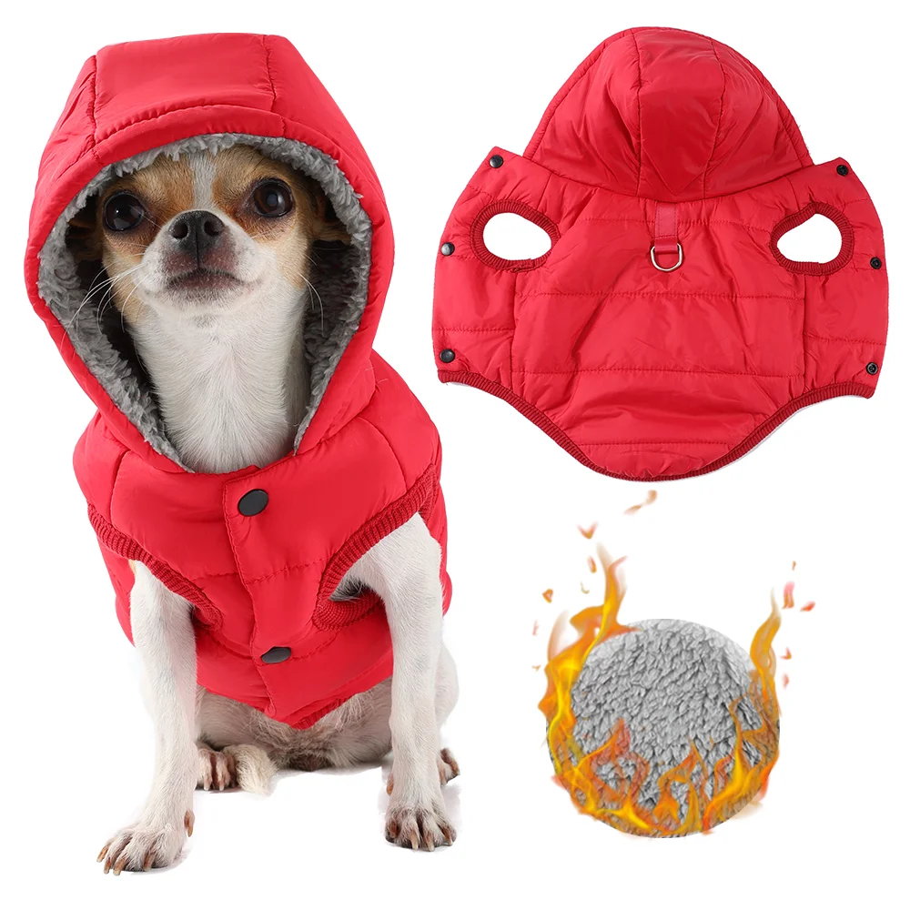 Sudaderas gruesas con capucha para mascotas con anillo en D, chaqueta cálida para cachorros de lana para invierno, abrigo impermeable para mascotas para perros pequeños y medianos, gatos, Pug