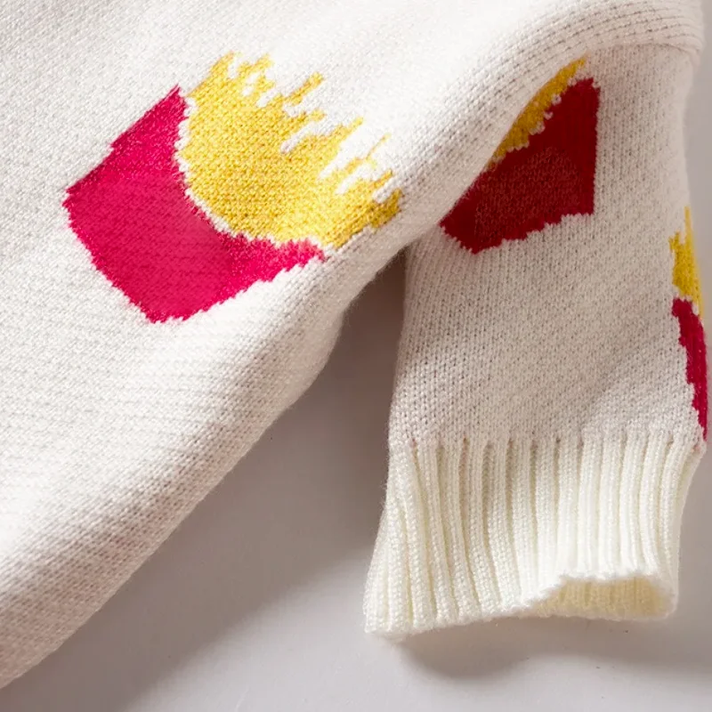 Suéter de algodón suave para cachorros, ropa para perros pequeños, bonito estampado de patatas fritas, chaqueta de diseño de alta calidad para gatos y animales, invierno