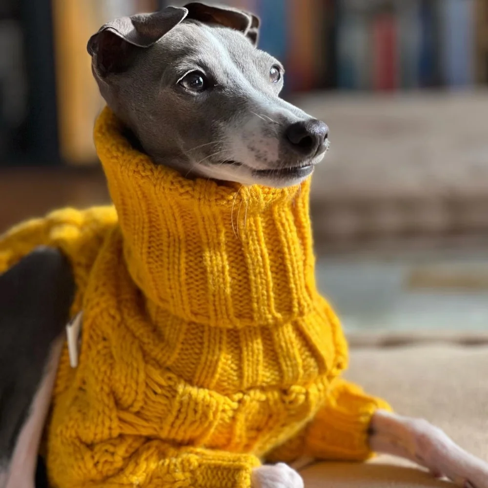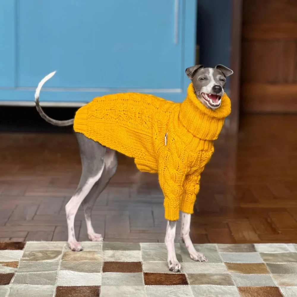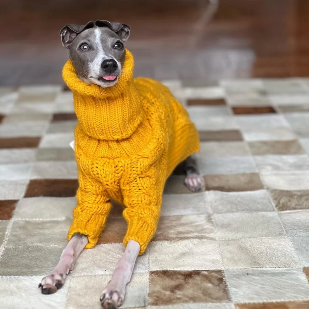 Suéter amarillo cálido para perros en invierno Abrigo de cuello alto suave tejido a mano para galgo italiano en otoño Ropa de estar por casa Bedlington