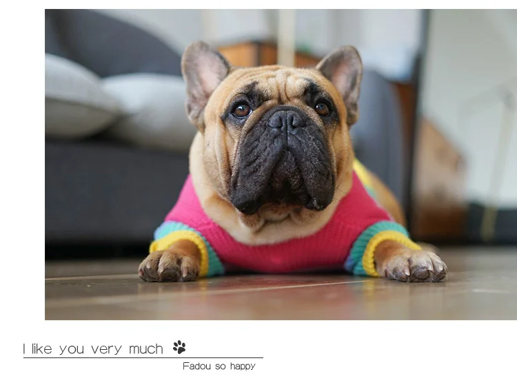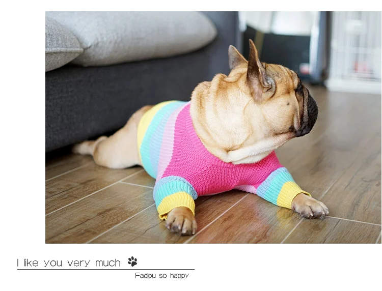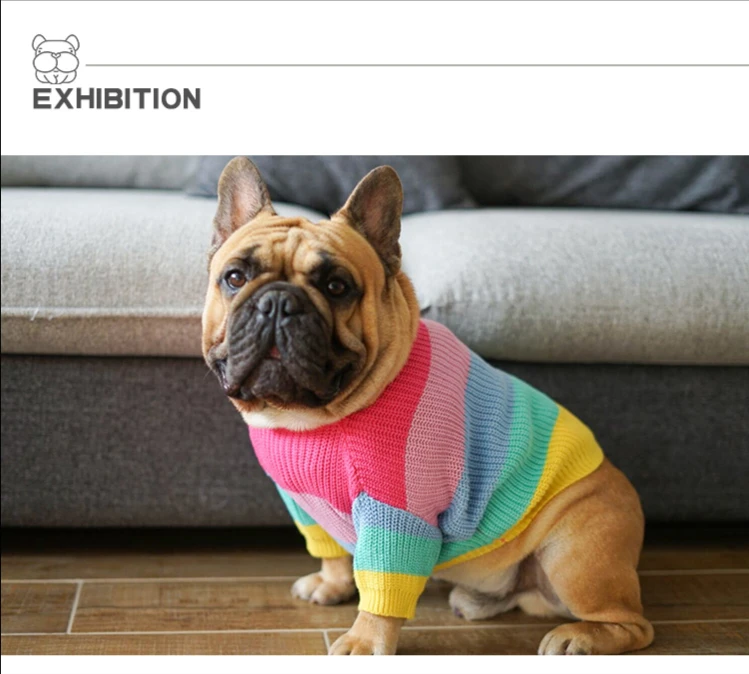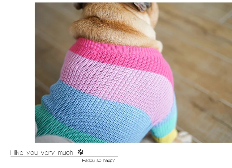 Suéter de invierno para cachorros de arcoíris, ropa cálida para perros pequeños, Bulldogs franceses, disfraz de Navidad, ropa de punto para perros, Mascotas