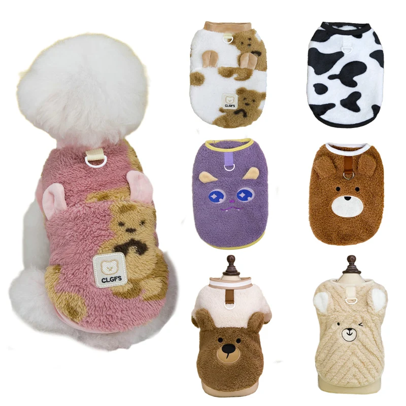Suéter bonito de animales de dibujos animados para perro, camisa polar, ropa suave y cálida para cachorros, chaleco para perro de otoño e invierno, chaqueta para perros pequeños