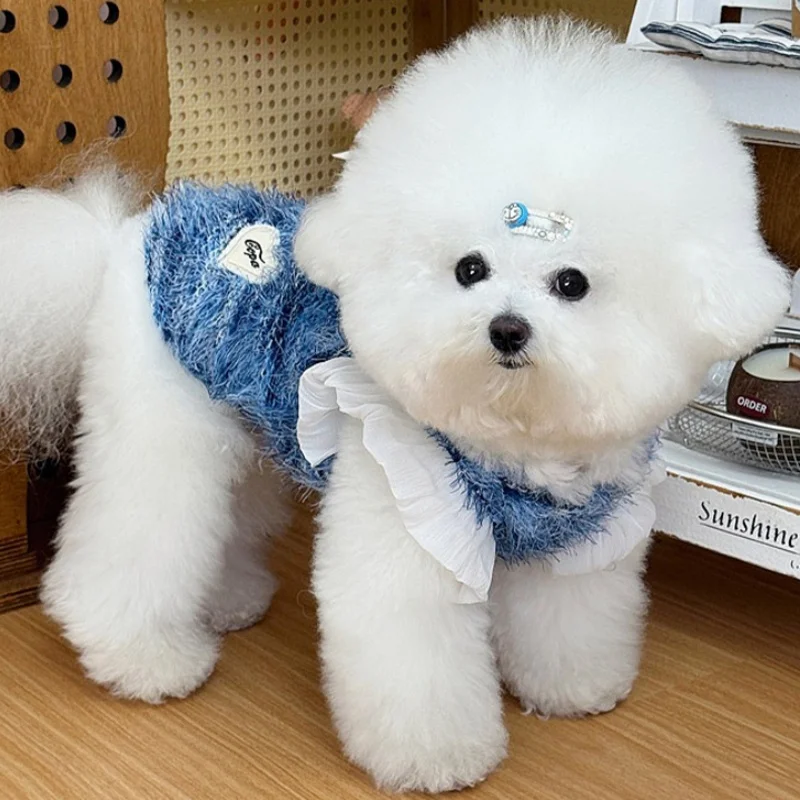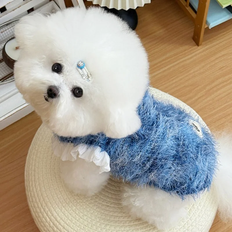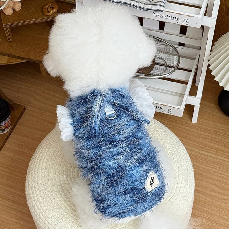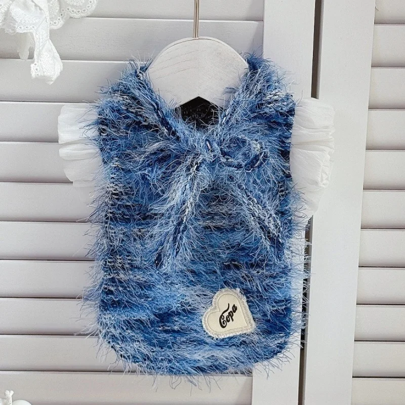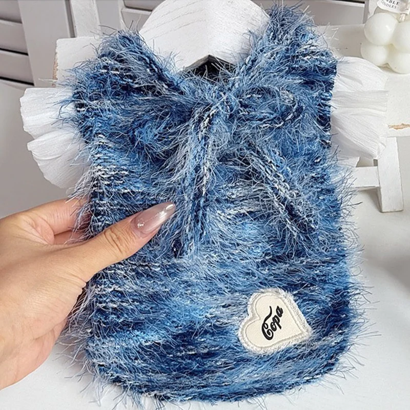 Suéter bonito con lazo para perro, ropa suave y cálida para perro, sudaderas con capucha para cachorro de estilo universitario a la moda, suéter de punto para invierno para gato, jerseys para mascotas, disfraz para perro